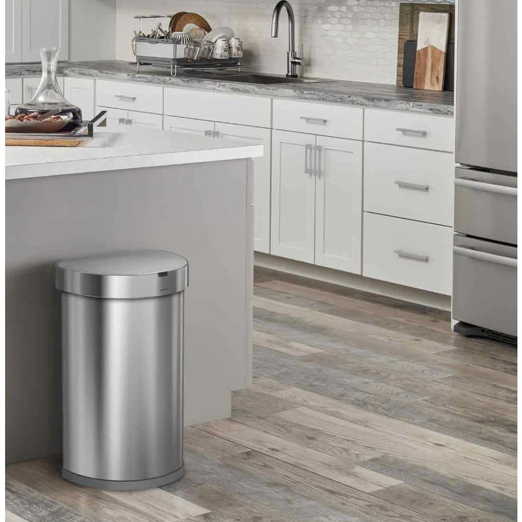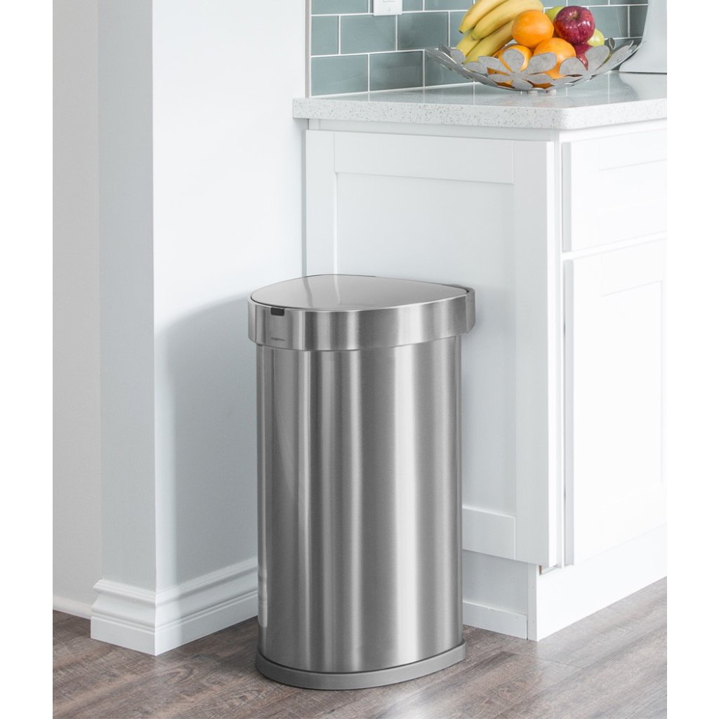 Bezdotykový odpadkový koš Simplehuman - 45 l, půlkulatý, matná ocel, FPP, kapsa na sáčky