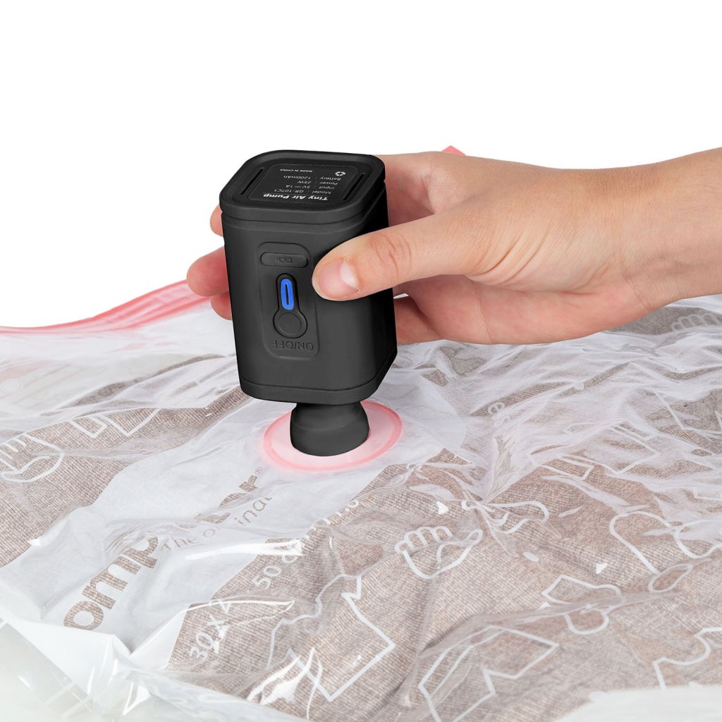 Rychle a bez námahy vysaje vzduch z vakuových pytlů, takže výrazně ušetříte místo v kufru nebo ve skříni – a to bez potřeby vysavače. Ať už se balíte na dovolenou, potřebujete doma ušetřit prostor, nebo jen nafukujete balónky na oslavu, pumpa vám vždy usnadní práci. Stačí ji jednoduše nabít přes USB a můžete odsávat vzduch kdekoliv, bez nutnosti zásuvky. Obousměrná funkce navíc umožňuje i rychlé nafouknutí předmětů, což oceníte při stanování, cestování nebo doma. Pumpa je malá, lehká a snadno se vejde do kufru nebo batohu, takže ji můžete mít vždy po ruce.