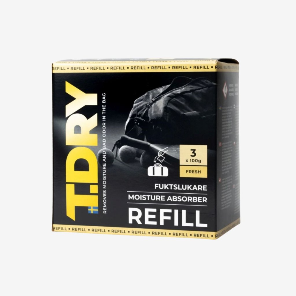 Účinná náplň do absorbéru vlhkosti do auta či sportovní tašky. T.Dry je klimaticky neutrální švédský produkt, který je vyroben z recyklovaného plastu a přírodních surovin. Odvlhčovač odstraňuje nepříjemné pachy a zanechává za sebou svěží vůni. Balení obsahuje 3 náhradní náplně do cestovního pohlcovače vlhkosti a zápachu T.Dry. Každá z nich má hmotnost 100 g a vydrží 1-3 měsíce.