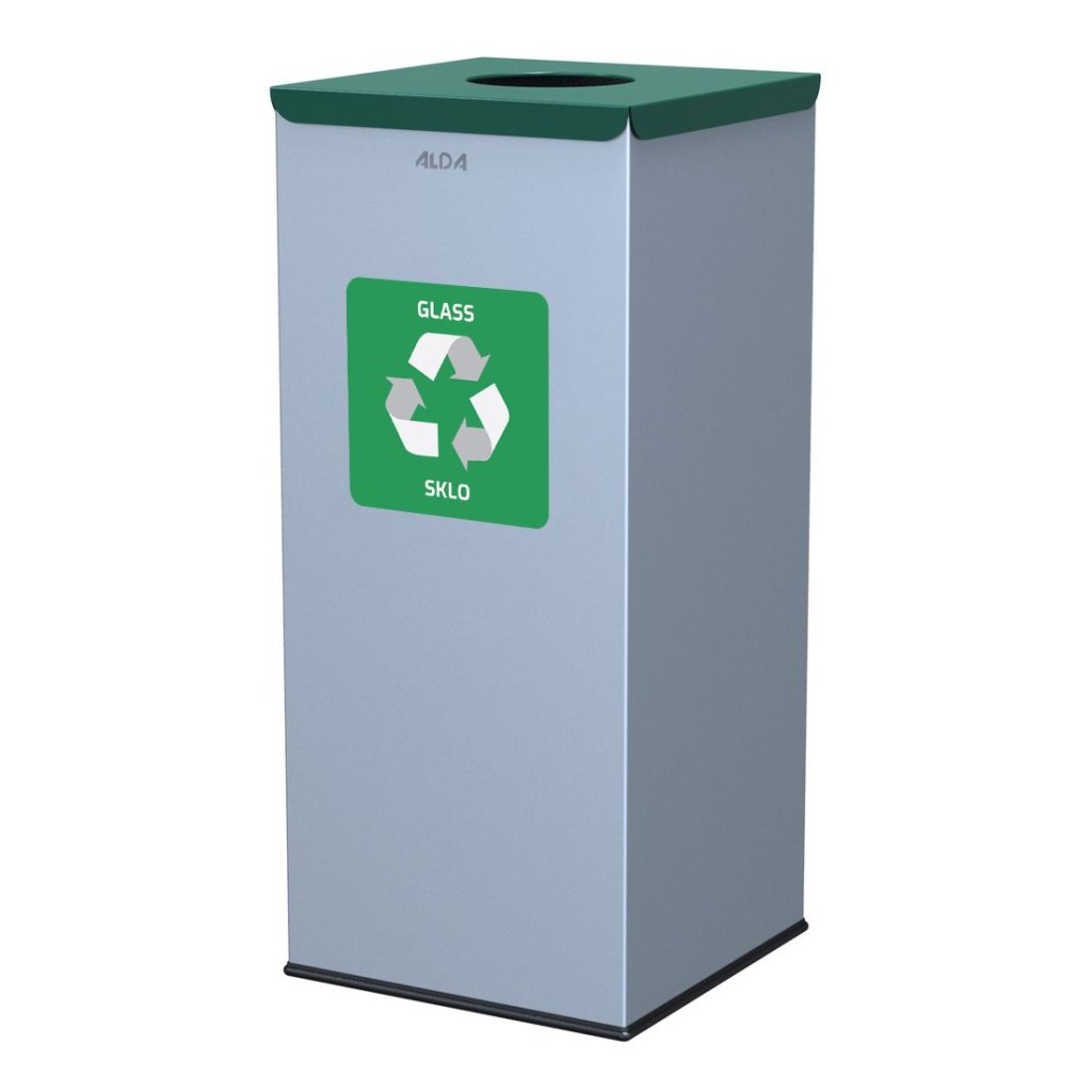 Koš na tříděný odpad Eko Square 60 l, zelené víko - sklo, lakovaná ocel, šedá