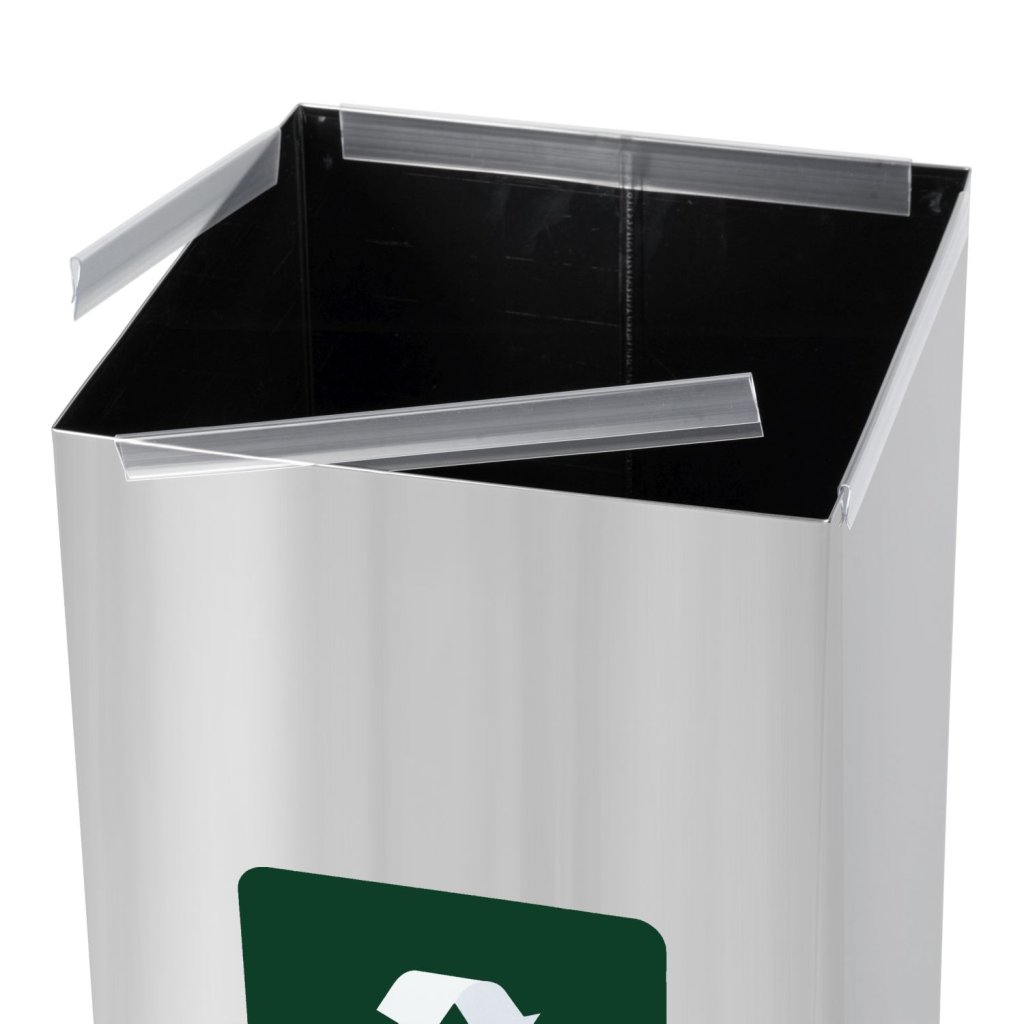 Odpadkový koš na tříděný odpad o objemu 60 l, vyrobený z kvalitní nerezové lesklé oceli. Vhodný pro kanceláře, sklady, nemocnice, hotely, školy, restaurace a další komerční a veřejné prostory. Zelené víko a samolepka usnadňují třídění skla. Díky odnímatelnému víku a praktickým držákům na pytle je údržba rychlá a hygienická. V kombinaci s dalšími variantami košů s barevnými víky si můžete vytvořit komplexní třídicí sestavu, díky které bude třídění přehledné a efektivní.