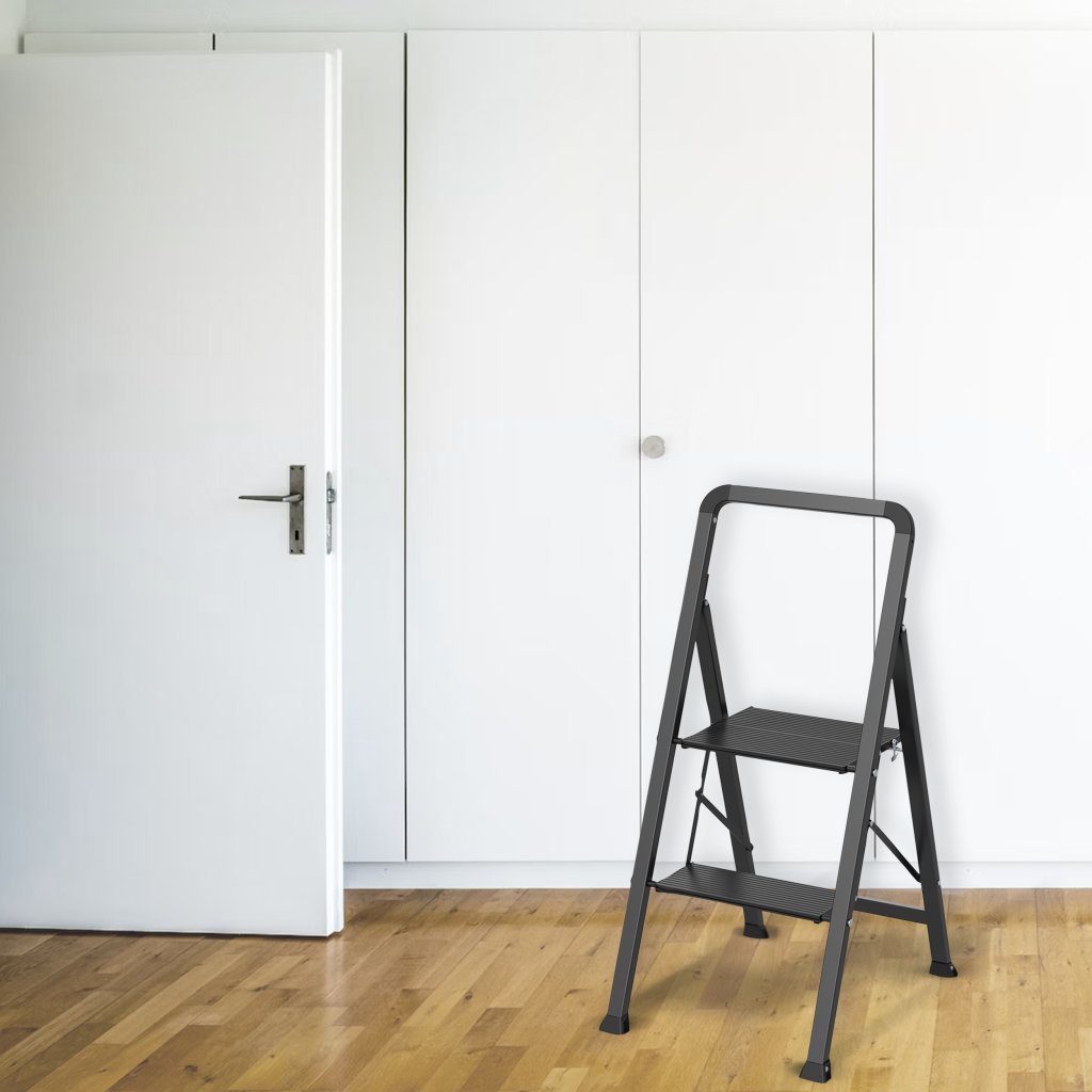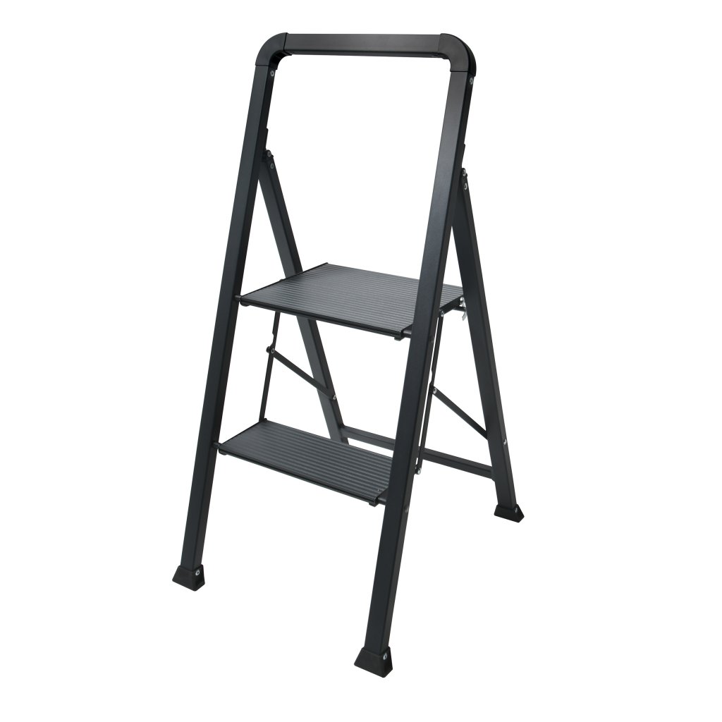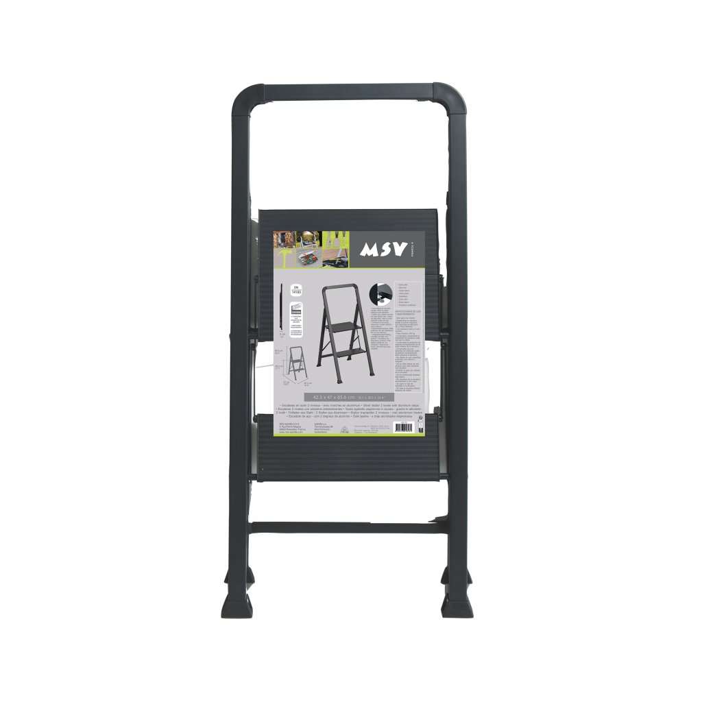 MSV 2stupňové skládací ocelové štafle do 150 kg (47,5 x 42,5 x 85 cm) matná černá