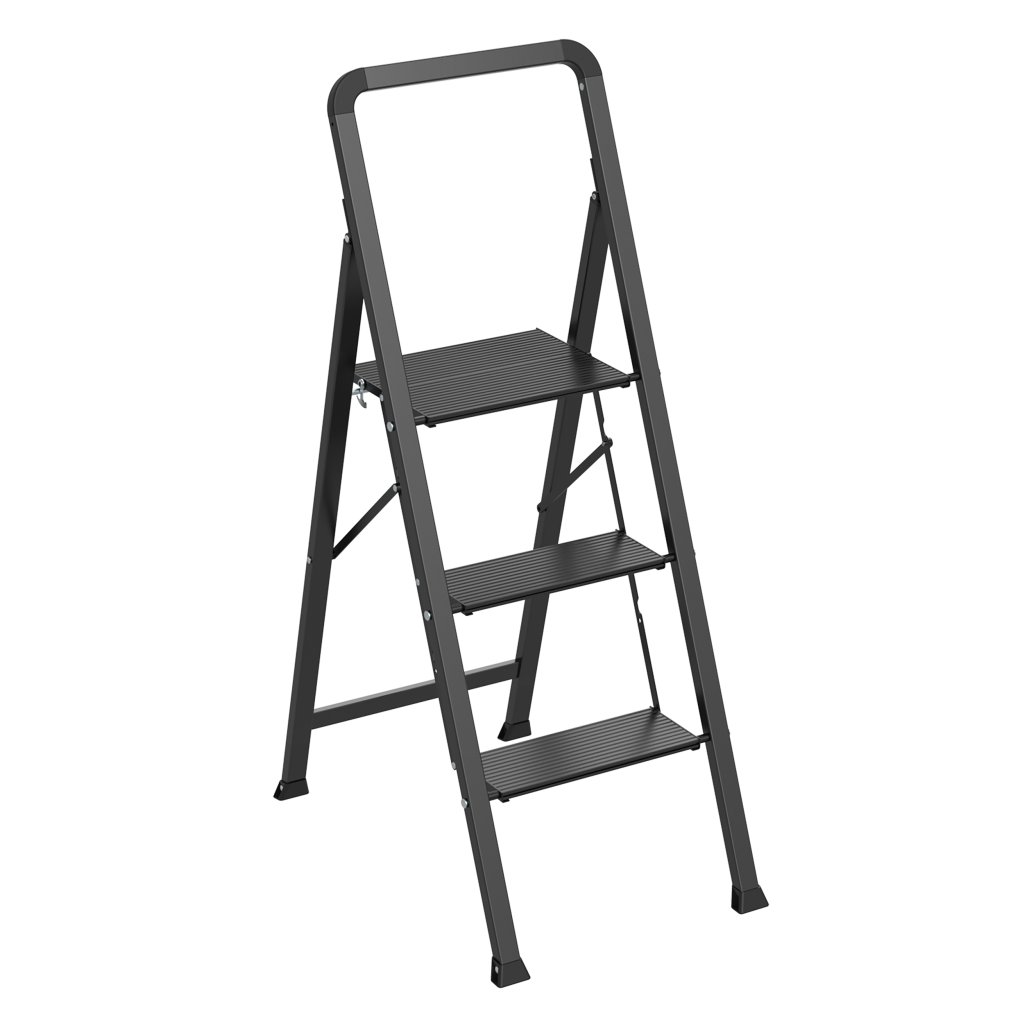 MSV 3stupňové skládací ocelové štafle do 150 kg (62 x 42,5 x 108 cm) matná černá