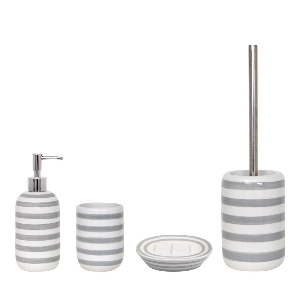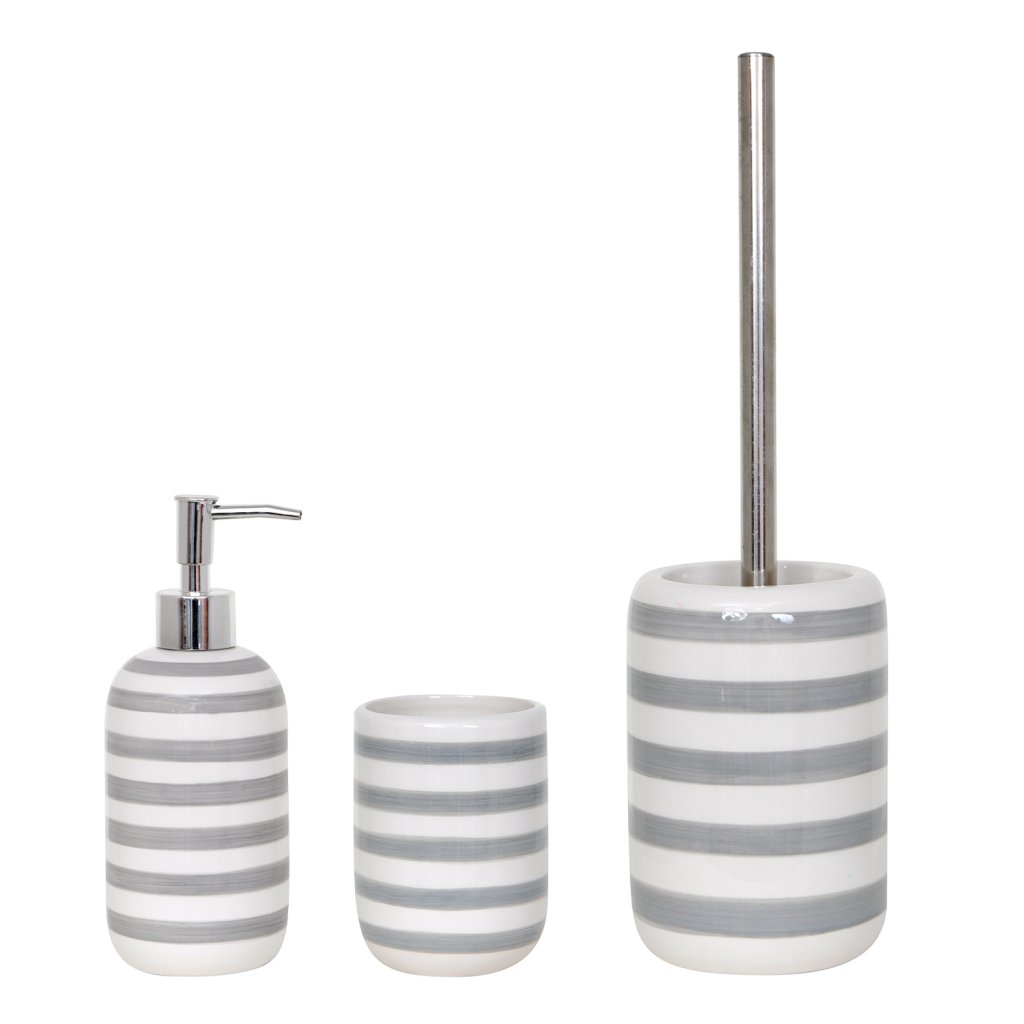 MSV dávkovač mýdla SEAUVILLE, bílý, šedé pruhy, keramika, 410 ml