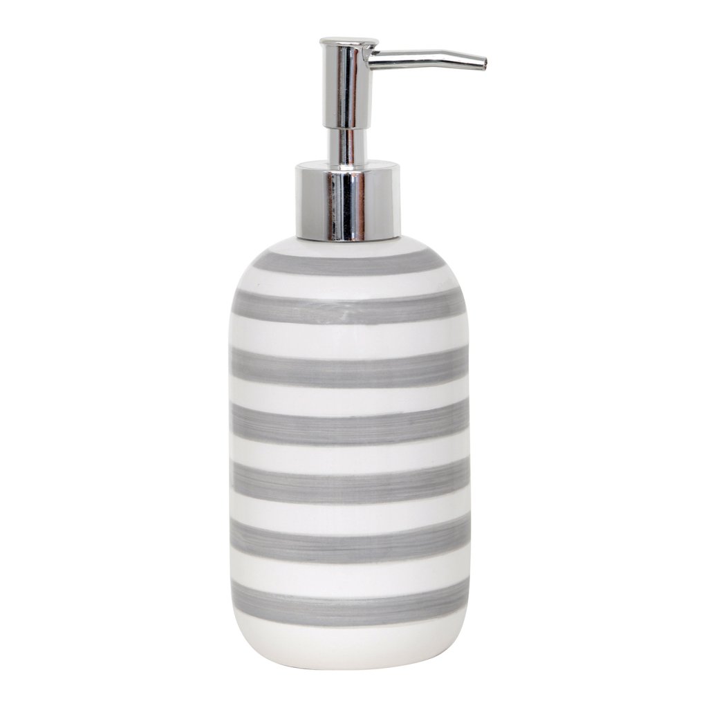 Oživte svou koupelnu s dávkovačem mýdla SEAUVILLE - Kvalitní keramika s pruhovaným designem pro svěží vzhled.