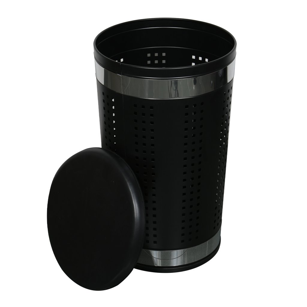 MSV koš na prádlo, s polstrovaným víkem, černý, ocel, 46 L