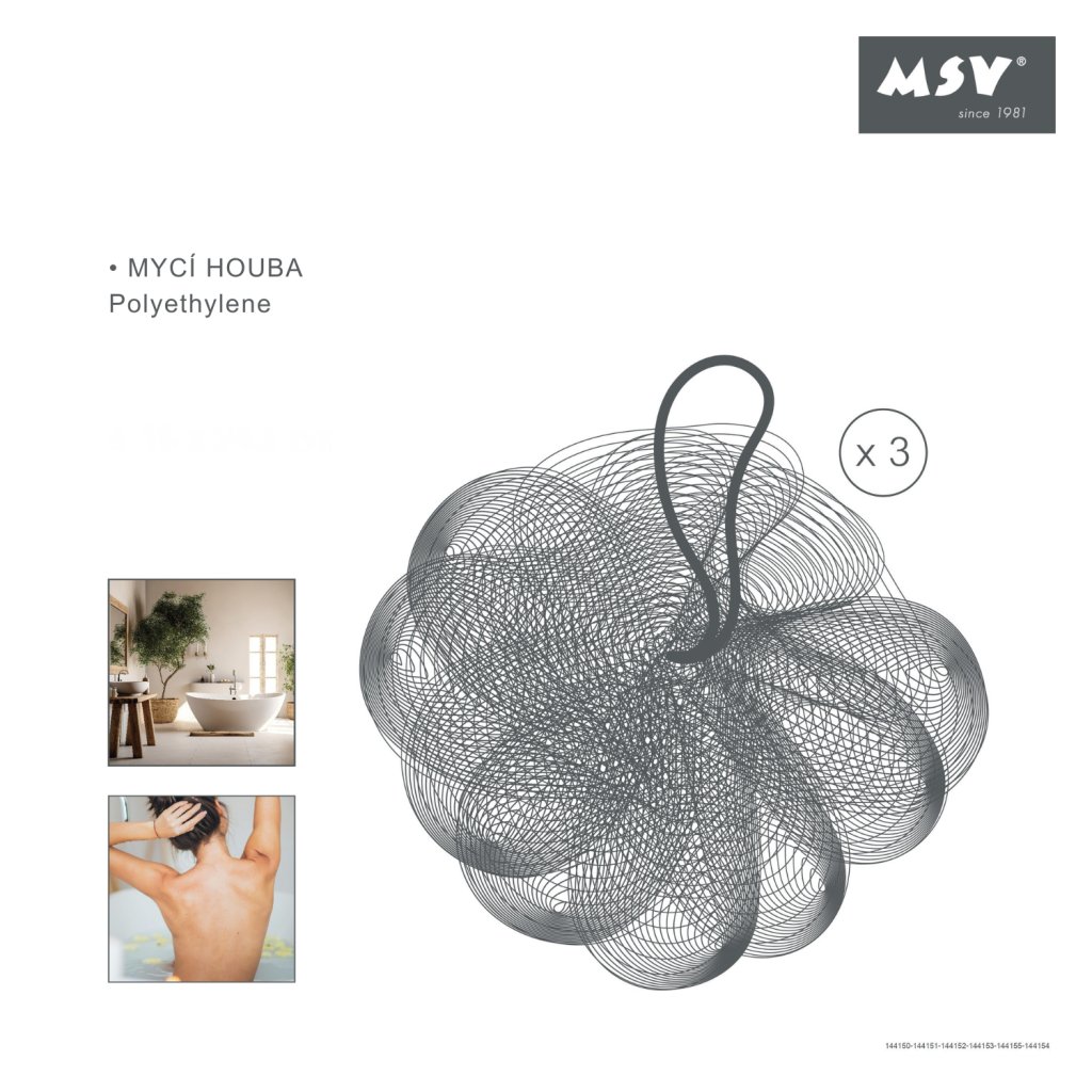 Mycí houby na tělo MSV jsou praktickým pomocníkem pro každodenní sprchování i koupel. Díky lehkému a jemnému materiálu účinně čistí pokožku, pomáhají vytvářet bohatou pěnu a zároveň jsou šetrné k pokožce. Poutko na zavěšení umožňuje rychlé vyschnutí, čímž zajišťuje hygienické používání a delší životnost. Sada tří kusů nabízí ideální řešení pro domácnost i na cesty.