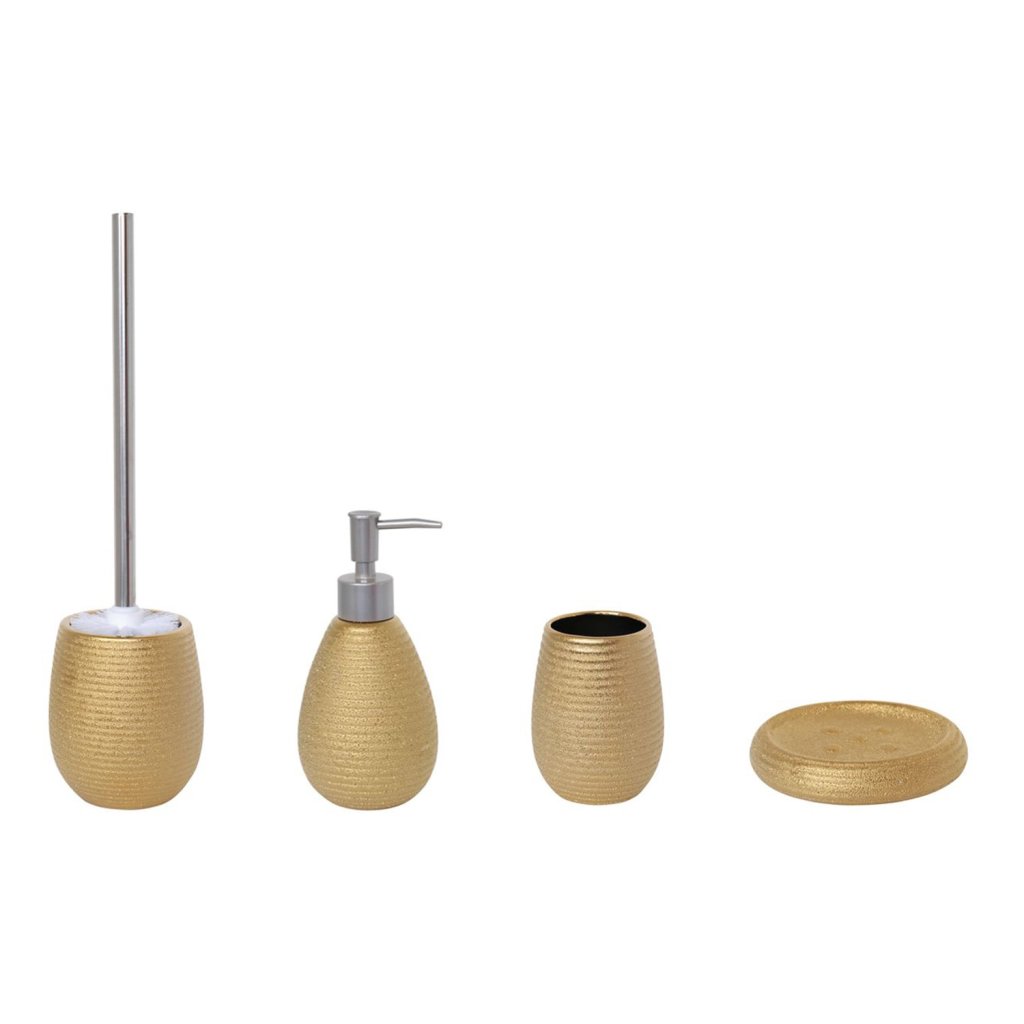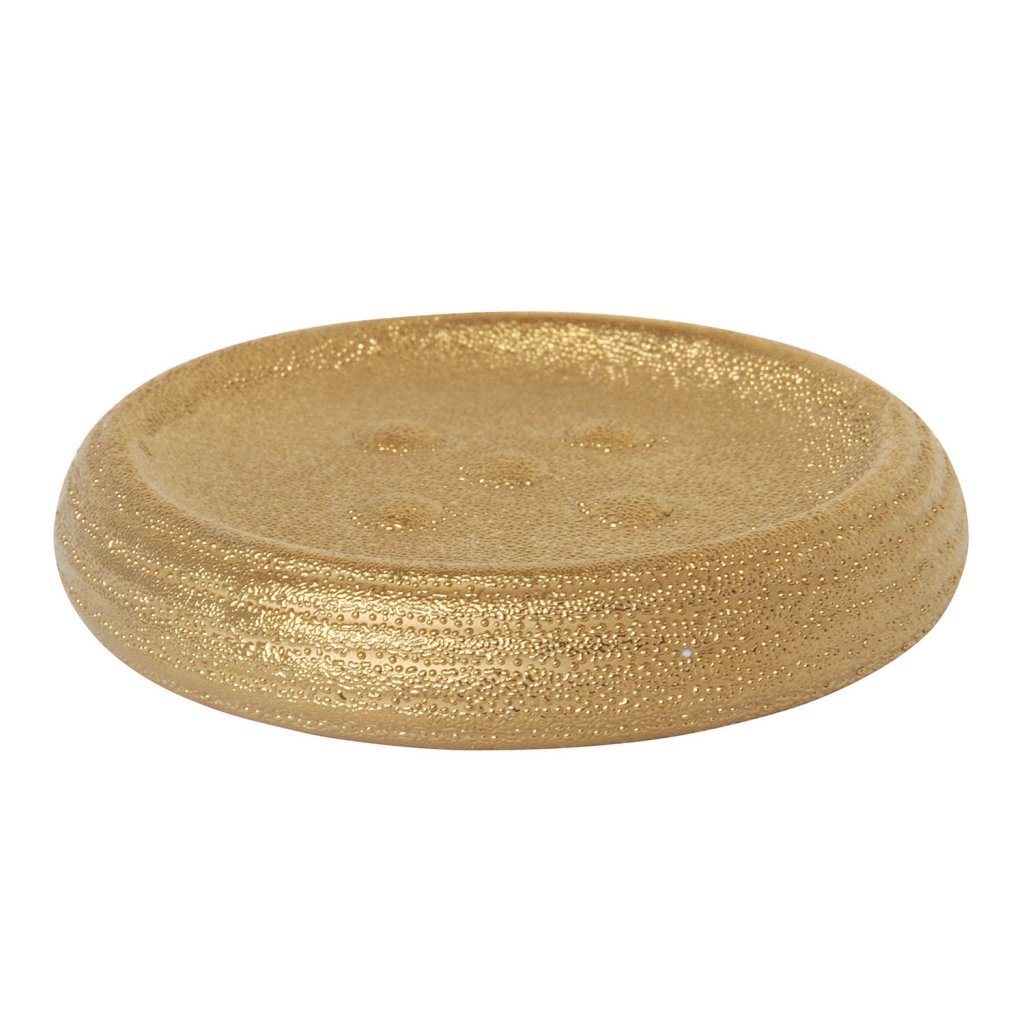 Keramická mýdlenka Oman od francouzské značky MSV ve zlaté barvě dodává koupelně luxusní vzhled.
