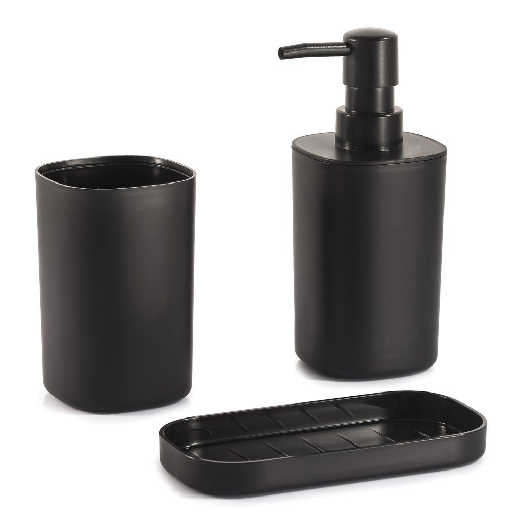 MSV sada 3 ks koupelnových doplňků LONA, černá, plast