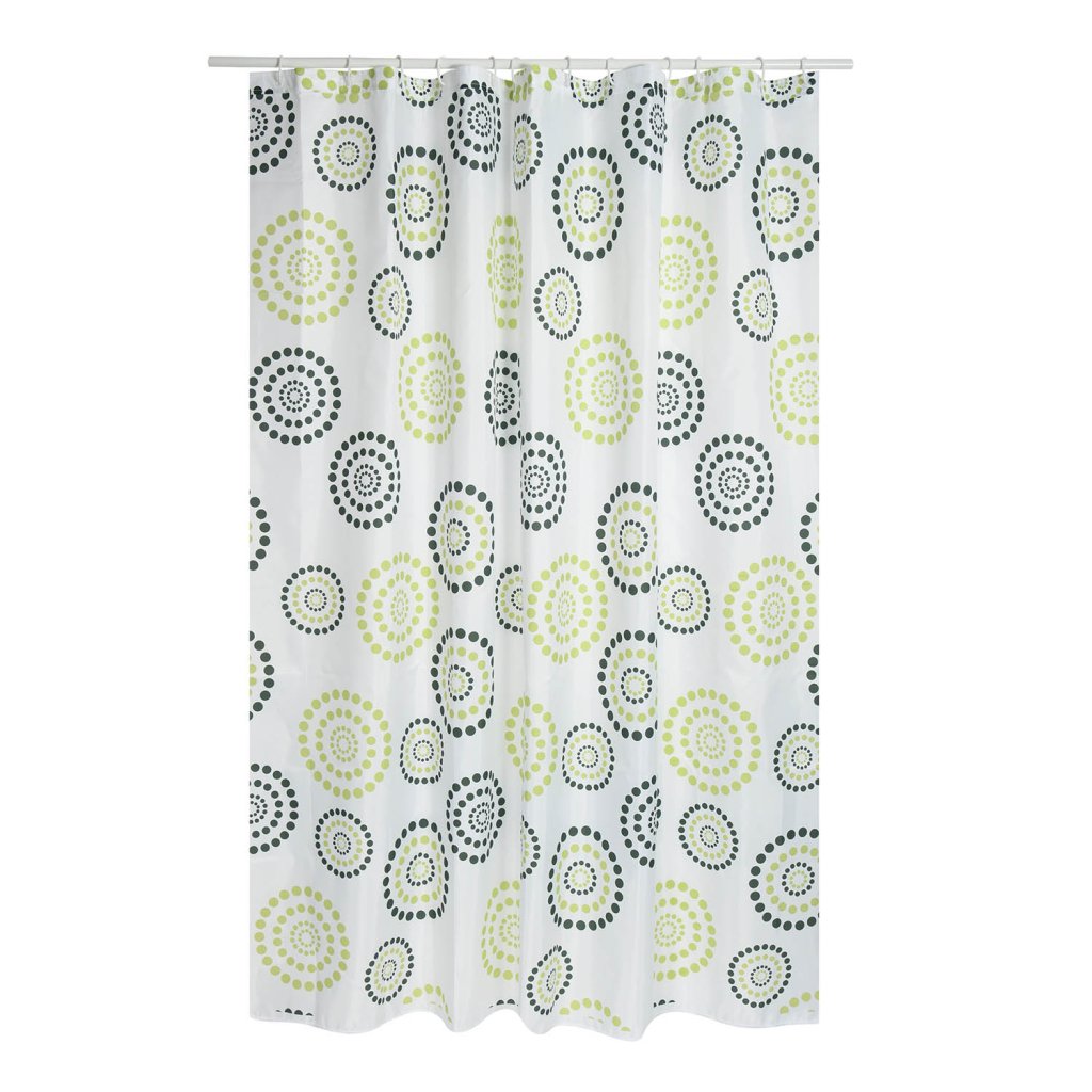 MSV sprchový závěs DOTS, motiv kruhy, bílo-zelený, 180 x 200 cm, polyester, s kroužky