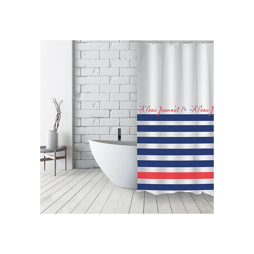 Francouzský sprchový závěs od značky MSV. Ve vodě... Tento závěs oblékne vaši koupelnu do elegance a decentnosti! Na světle modrém pozadí je vyobrazen obrovský bazén s dopravními pruhy v jemných bílých pruzích a tisíce plavců v plaveckých čepicích – ano, ano, jsou to malé trikolórové tečky! Tento model je aktuální, osvěžující a přináší do každé koupelny výrazné vizuální prvky. Rozměry: 180 x 200 cm Barva: modrá, bílá a červená Materiál: PolyesterDiskuze k produktu (0)