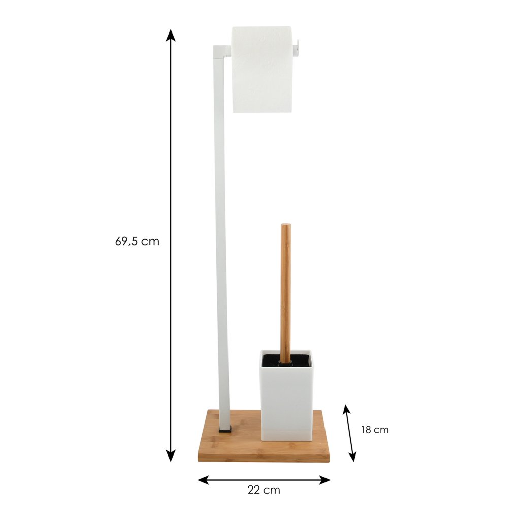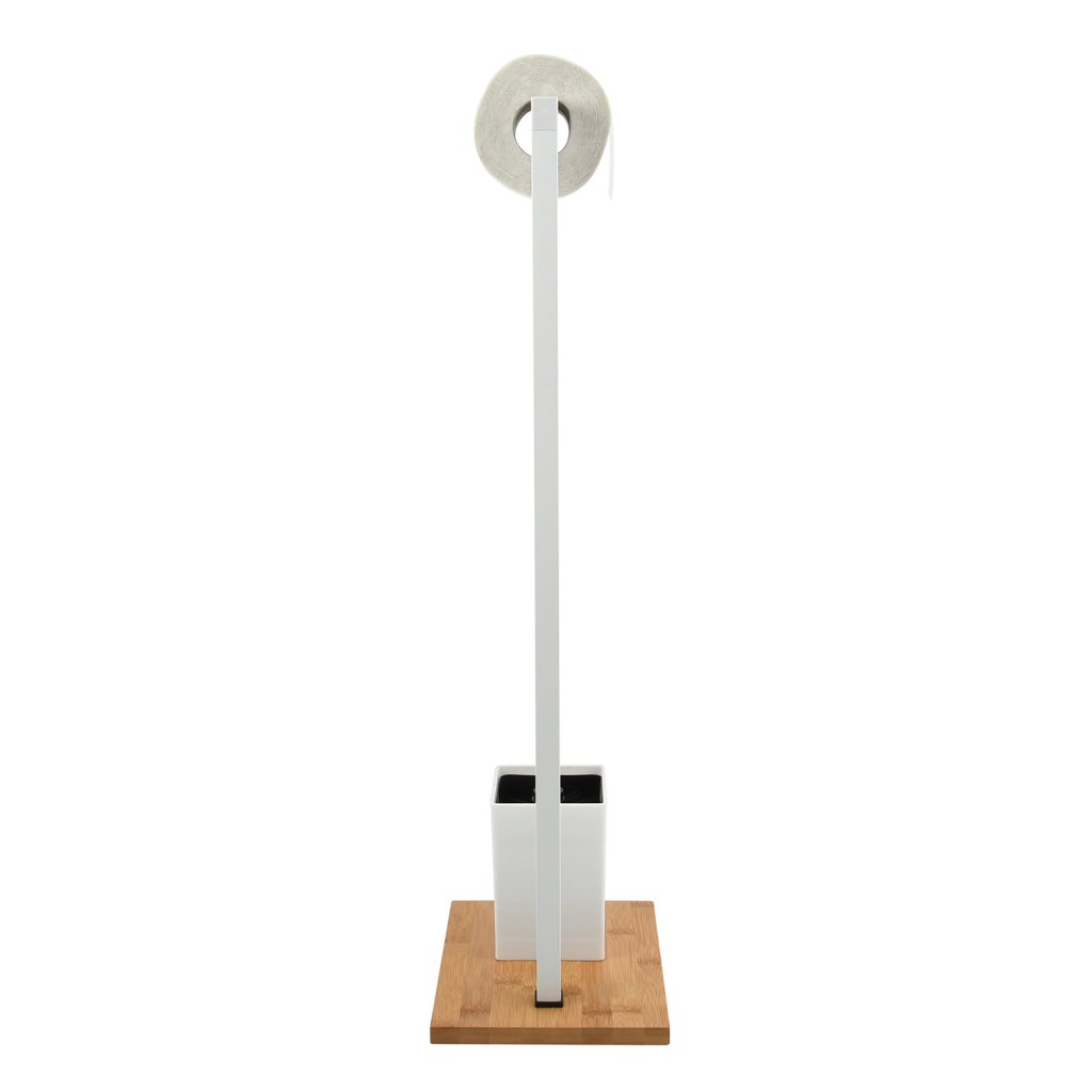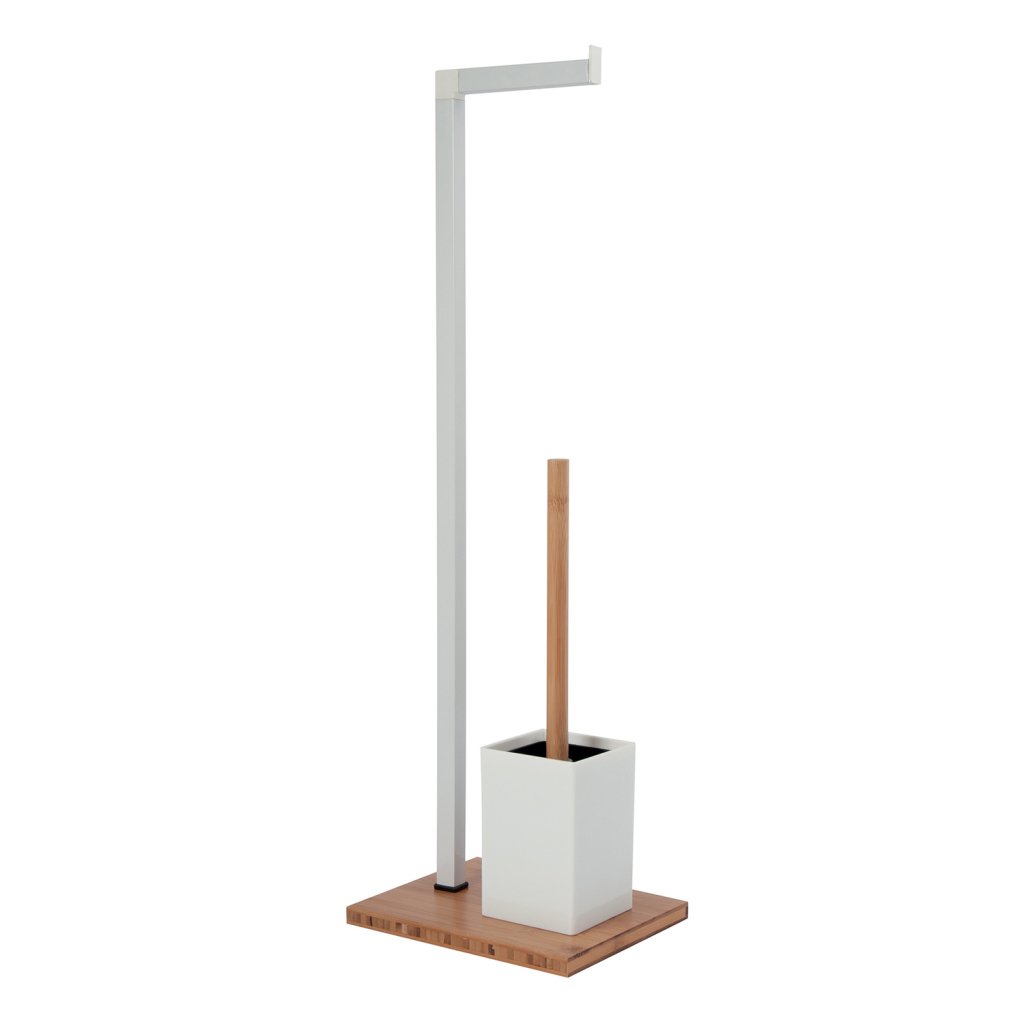 MSV stojan na toaletní papír s WC štětkou SQUARE, bílý, ocel, bambus