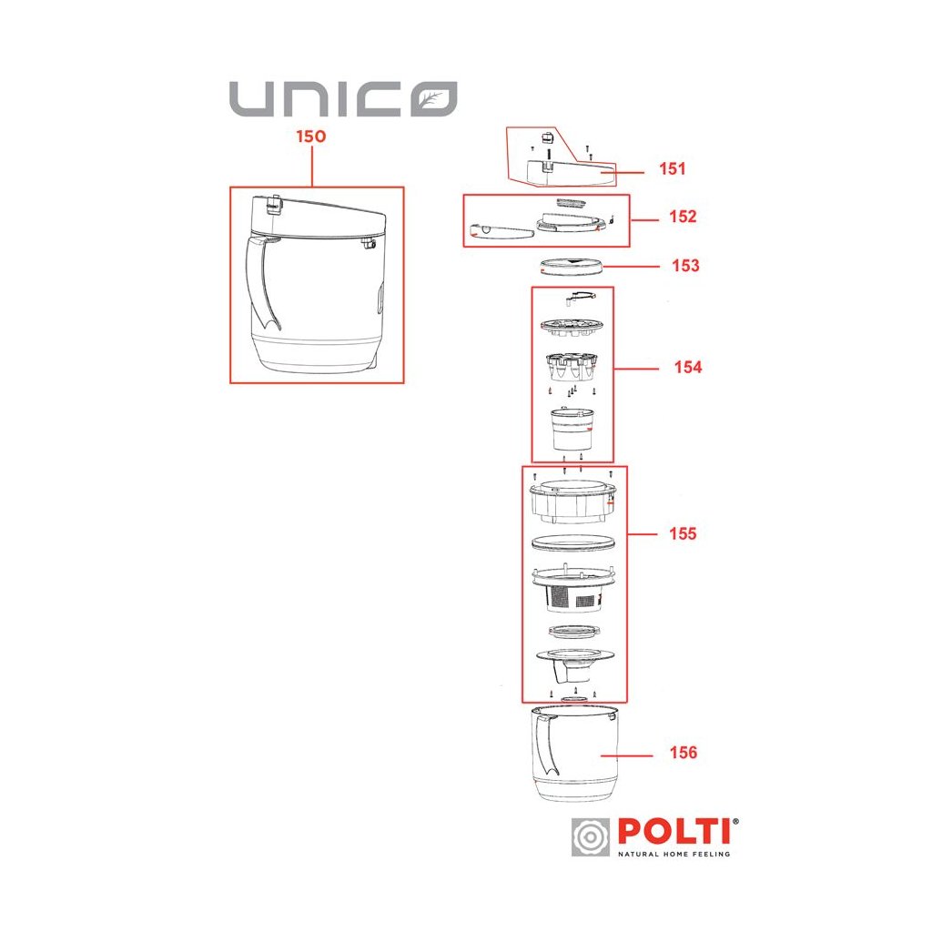 Náhradní vrchni kryt filtrační nádoby na nečistoty pro parní vysavač Polti UNICO