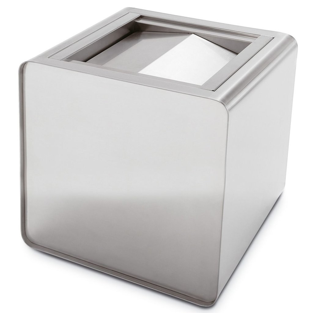 Moderní koš z ušlechtilého materiálu - nerez oceli pro firemní reprezentativní prostory. Výškou 35 cm se hodí i k umístění na kancelářský stůl. Koš lze zkombinovat s popelníkem či květináčem ve stejném designu a tím získate vhodný doplněk například pro chodby, čekárny, či jinak veřejně přístupná místa.