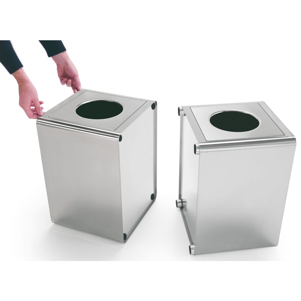 Moderní koš z ušlechtilého materiálu - nerez oceli pro firemní reprezentativní prostory. Výškou 35 cm se hodí i k umístění na kancelářský stůl. Koš lze zkombinovat s popelníkem či boxem na květiny ve stejném designu Caimi Brevetti Prisma a tím získate designově zajímavou sestavu, která skloubí dohromady krásu s funkčností.