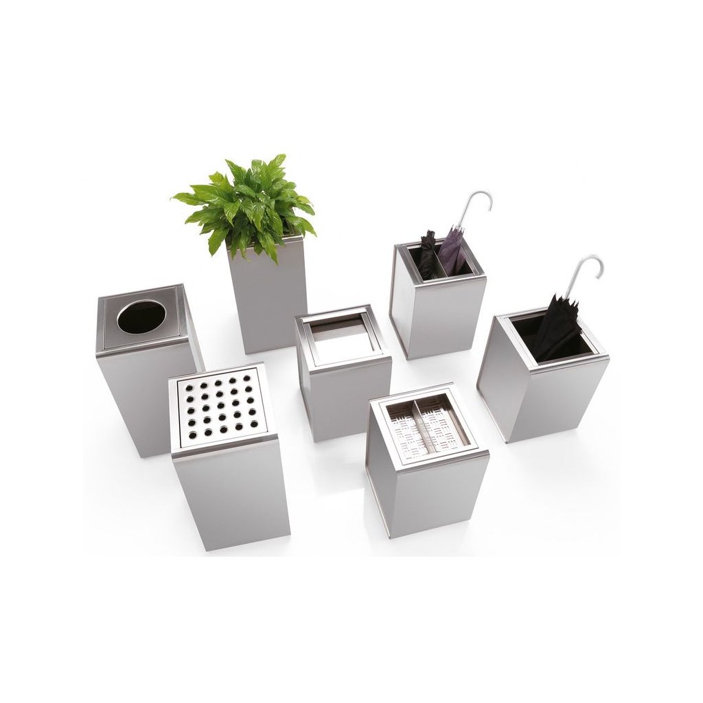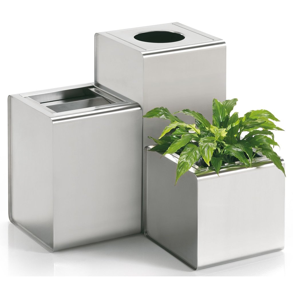Moderní koš z ušlechtilého materiálu - nerez oceli pro firemní reprezentativní prostory. Koš lze doplnit popelníkem či květináčem ve stejném designu a tím získate vhodnou sestvu například pro chodby, čekárny, či jiné, veřejně přístupná místa.