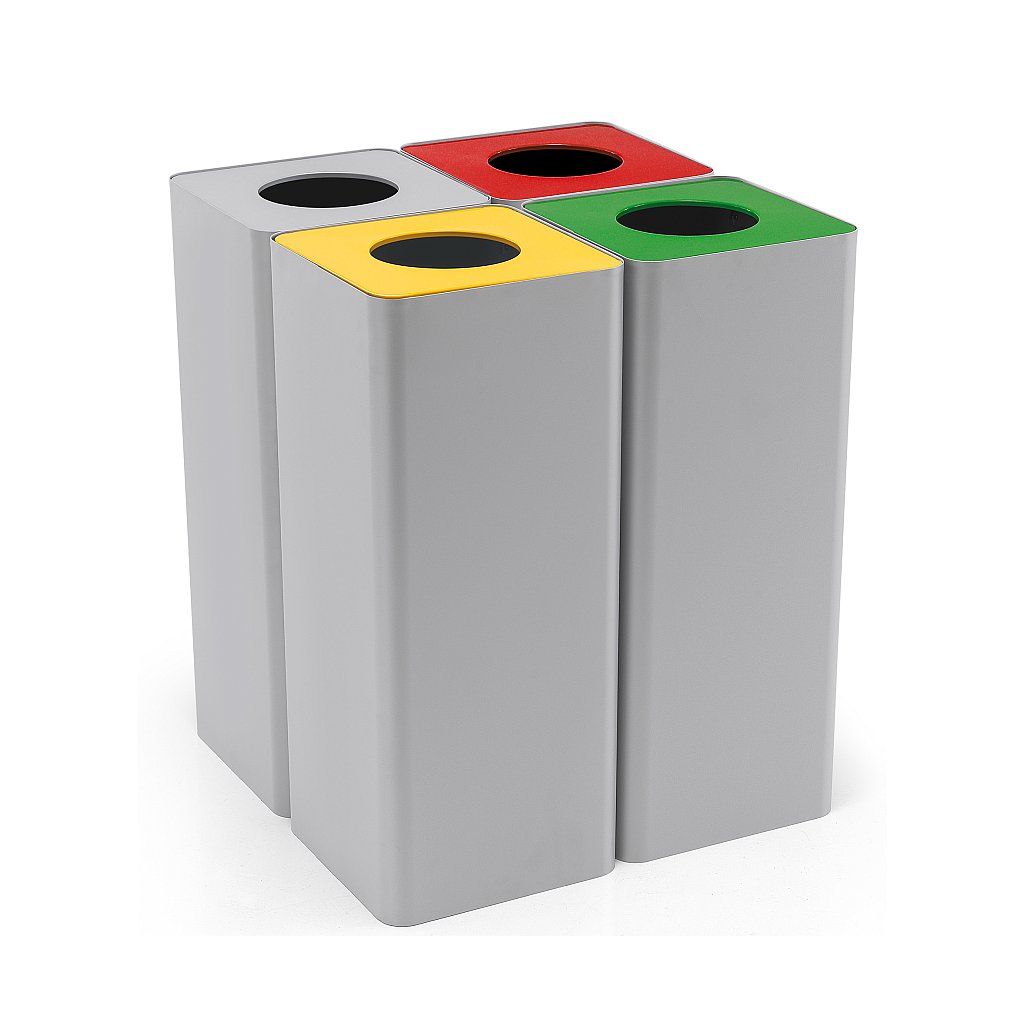 Horní část koše s otvorem neslouží jen pro vhazování odpadu, ale také jako prostředek pro barevné označení jednotlivých nádob pro konkretní typ odpadu. V Evropské unii máme již mnoho let zaveden systém rozlišování odpadu dle barvy a toto barevné označení košů je nejenom praktické z hlediska rozlišení, ale tyto barvy dávají celému prostoru veselejší tvář a působí radost.a pocit čistoty. Klasicky žlutá znamená prostor pro plasty, modrá pro papír, zelená pro tmavé sklo a bílá pro bílé sklo. Méně používaná je červená barva, která znamená drobný elektroodpad. A standardně šedá barva ukazuje na směsný odpad, který je samozřejmě také součástí třídění odpadu.
