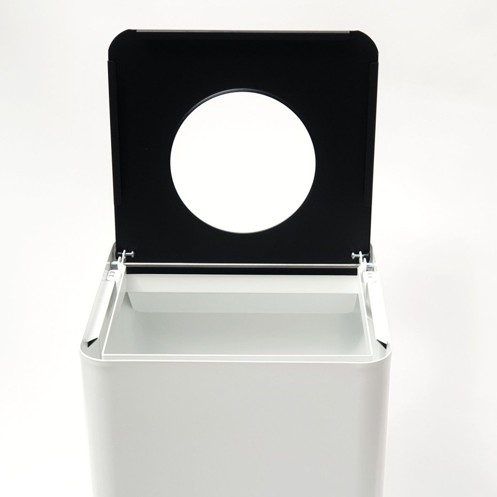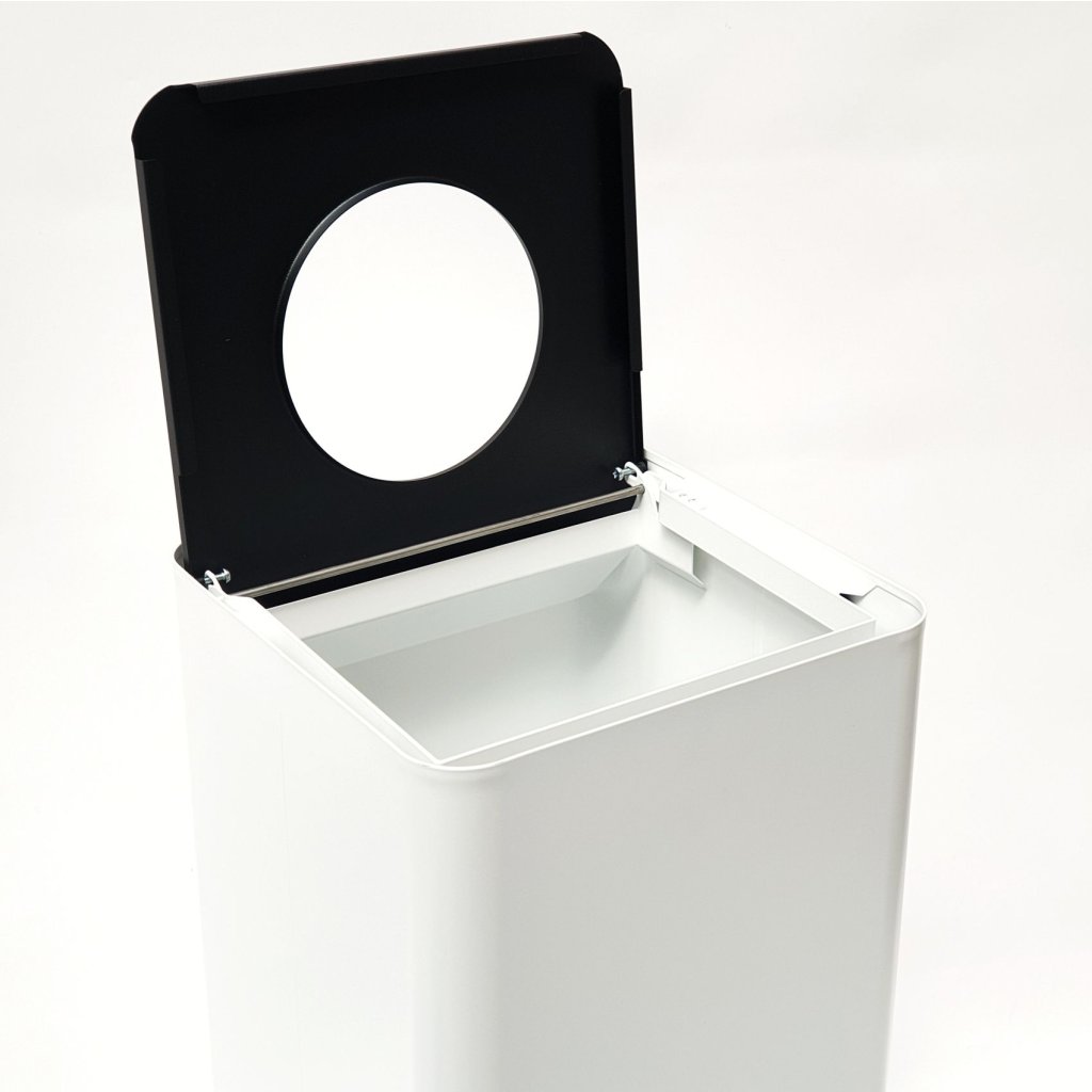 Horní část koše s otvorem neslouží jen pro vhazování odpadu, ale také jako prostředek pro barevné označení jednotlivých nádob pro konkretní typ odpadu. V Evropské unii máme již mnoho let zaveden systém rozlišování odpadu dle barvy a toto barevné označení košů je nejenom praktické z hlediska rozlišení, ale tyto barvy dávají celému prostoru veselejší tvář a působí radost.a pocit čistoty. Klasicky žlutá znamená prostor pro plasty, modrá pro papír, zelená pro tmavé sklo a bílá pro bílé sklo. Méně používaná je červená barva, která znamená drobný elektroodpad. A standardně šedá barva ukazuje na směsný odpad, který je samozřejmě také součástí třídění odpadu.