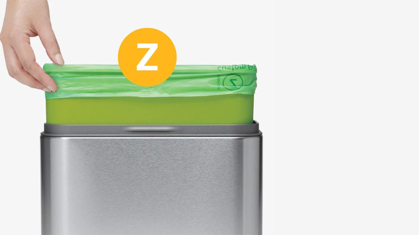Kompostovatelné odpadkové pytle s označením „Z“ jsou přímo určeny pro koše Simplehuman na organický odpad. Dokonale padnou do vnitřní nádoby a nevytvářejí ošklivý převis. Díky certifikátu o biologické rozložitelnosti lze pytle kompostovat spolu s bioodpadem. Balení obsahuje 30 náhradních „Z“ pytlů.