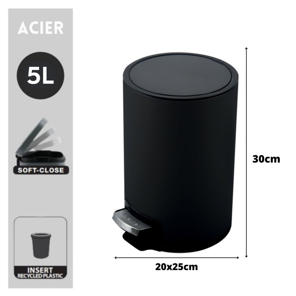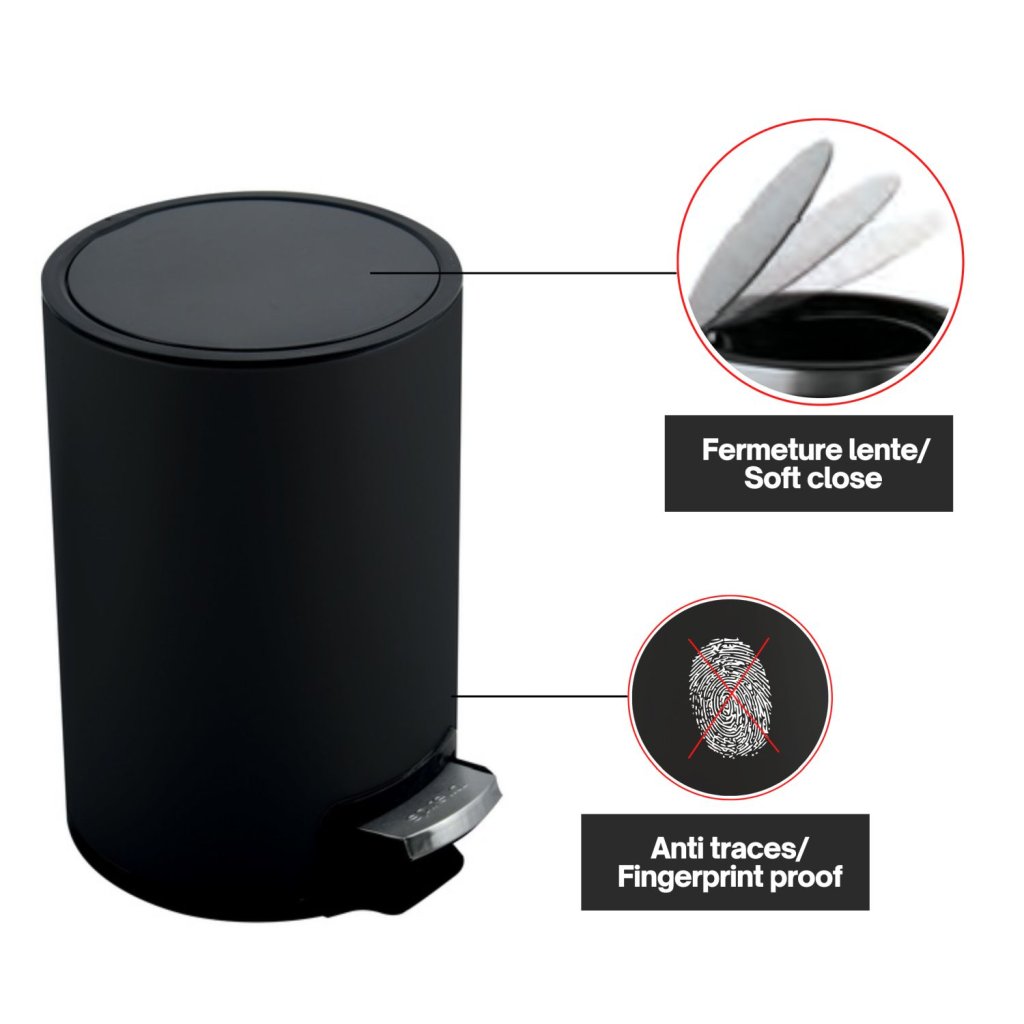 Spirella pedálový odpadkový koš RIKU, černá, ocel, 5 L