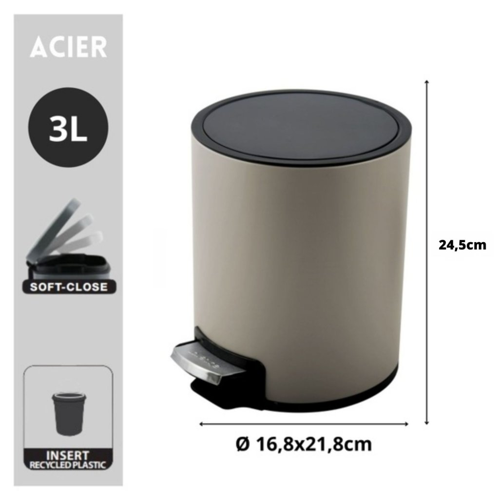 Pedálový odpadkový koš RIKU od švýcarské značky Spirella s objemem 3 L kombinuje styl a funkčnost. Vyrobený z odolné oceli a víka z ABS plastu, je ideálním doplňkem do koupelny, pracovny nebo kuchyně. Pedálové otevírání s funkcí soft close zajišťují snadné a tiché používání.Více informací