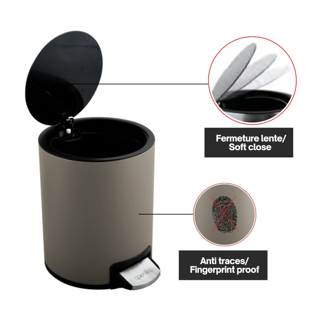 Spirella pedálový odpadkový koš RIKU, šedohnědá, ocel, 3 L