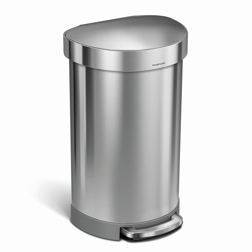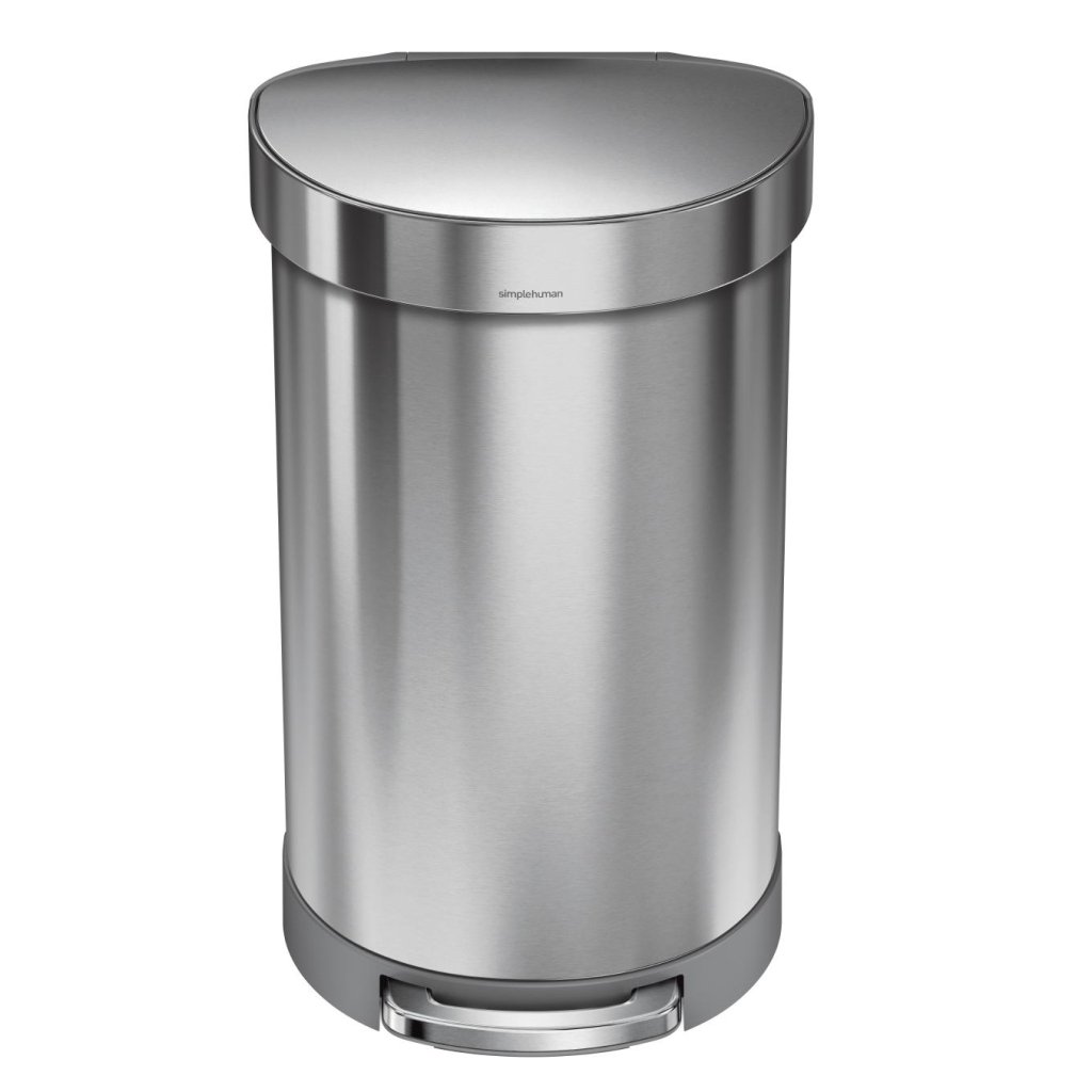 Pedálový odpadkový koš Simplehuman – 45 l, půlkulatý, matná ocel, FPP, rám na sáčky