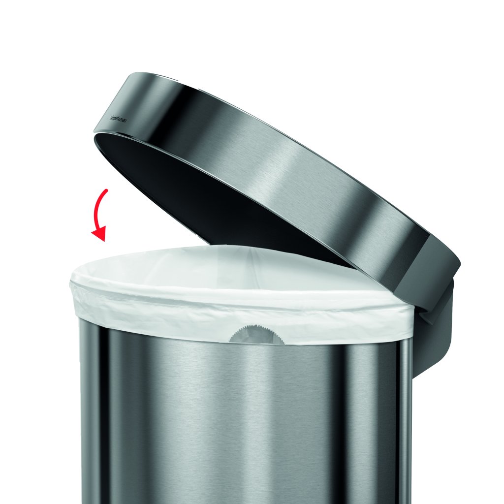 Simplehuman vyrábí vlastní odpadkové pytle. Vyznačují se vysokou pevností a snadno se z koše vyndávají. Sáčky, které přesně padnou do tohoto koše, najdete pod písmenkem J (30-45 l)