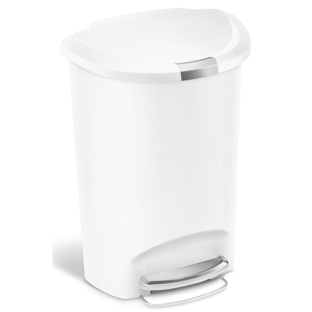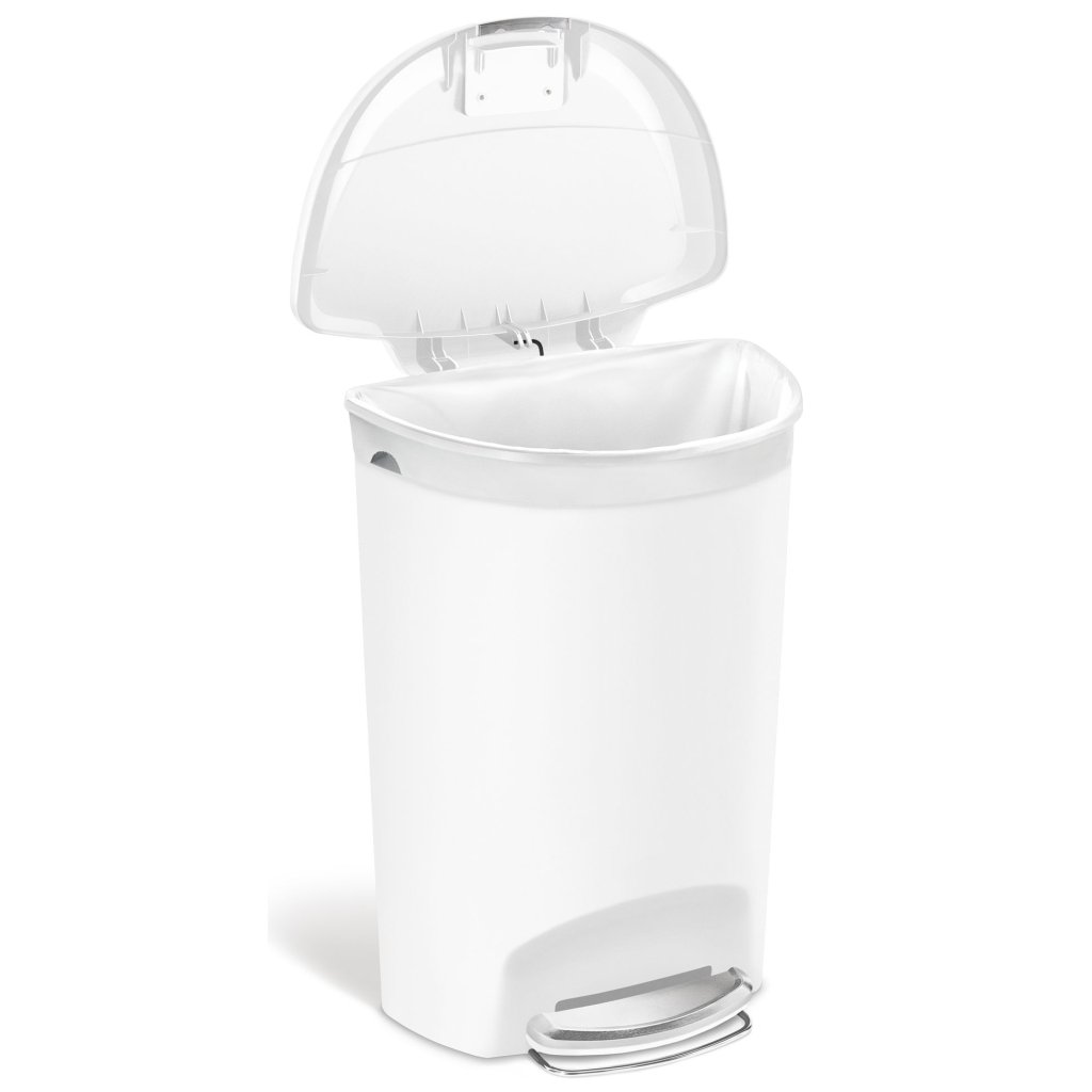 Pedálový odpadkový koš Simplehuman – 50 l, půlkulatý, plast, bílý