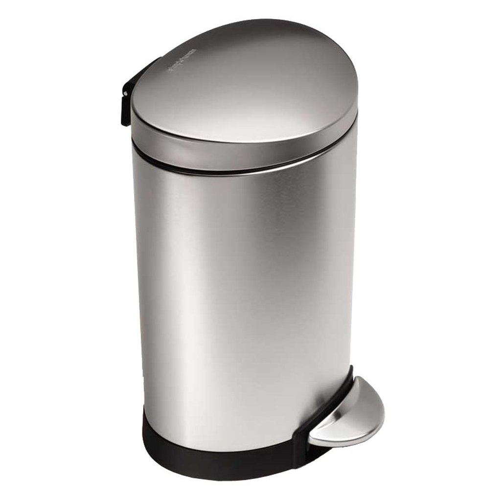 Pedálový odpadkový koš Simplehuman – 6 l, půlkulatý, matná ocel, FPP
