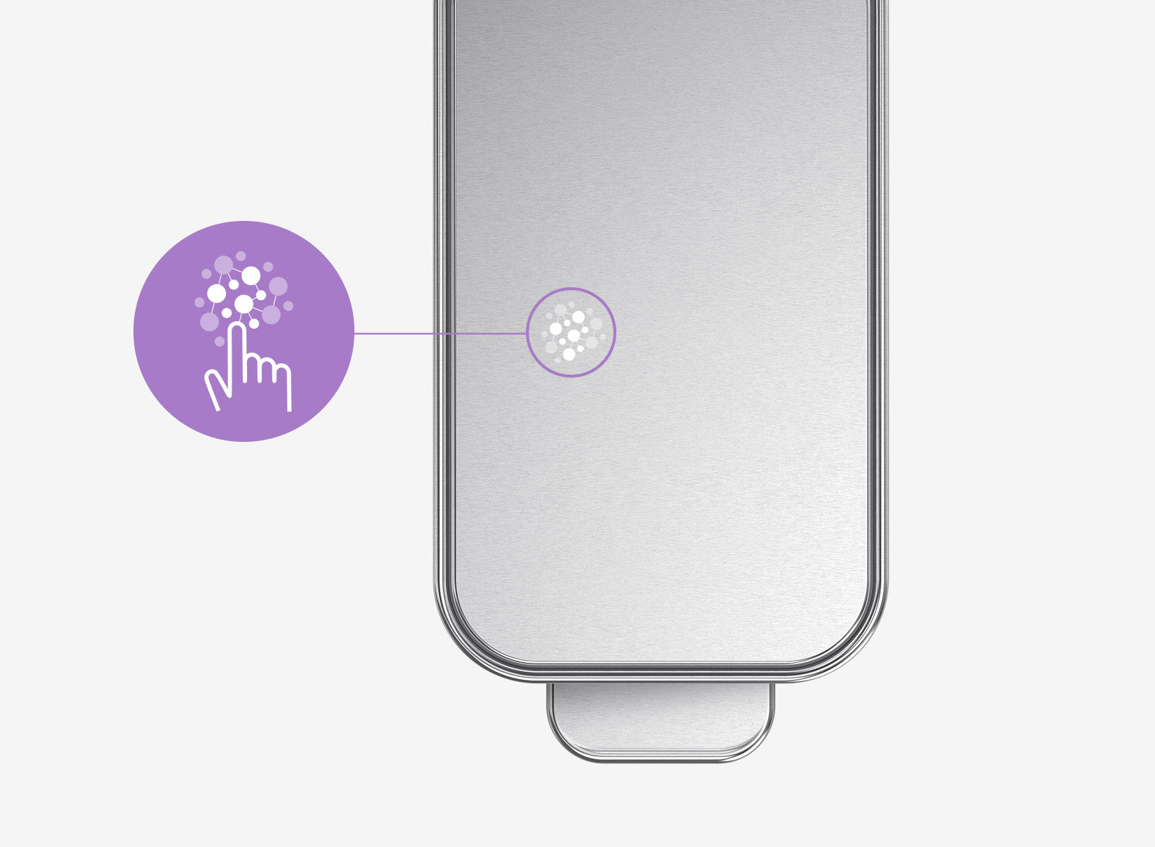 Povrch odpadkového koše je opatřen transparentní vrstvou s částicemi nano-stříbra, která ho chrání nejen před otisky prstů, ale také před množením nežádoucích mikroorganismů. (pouze model z kartáčované nerez oceli)