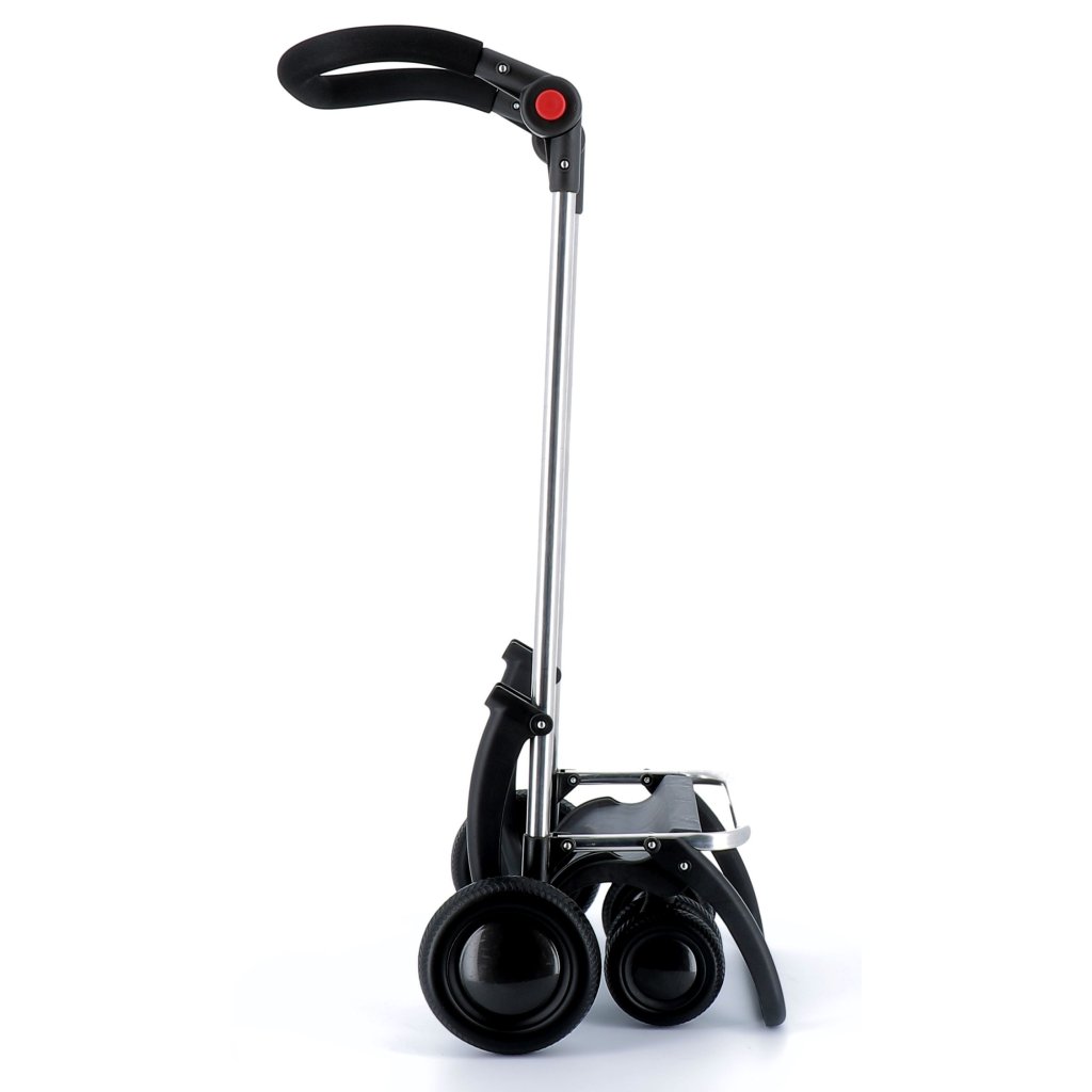 Podvozek Tour je vybaven celkem 6 kolečky dvou různých velikostí a nabízí flexibilní způsob manipulace podle vašich potřeb. Pro rychlý transport a lehčí nákup využijte pouze zadní kola, kdy tašku klasicky táhnete za sebou. Máte-li však těžší nákup nebo dáváte přednost stabilní jízdě, zapojte do akce také dva páry předních koleček menší velikosti. V tomto případě tašku tlačíte před sebou jako kočárek a tím minimalizujete zátěž pro vaše záda. Ke komfortní jízdě přispívá také fakt, že přední kolečka jsou otočná o 360°.