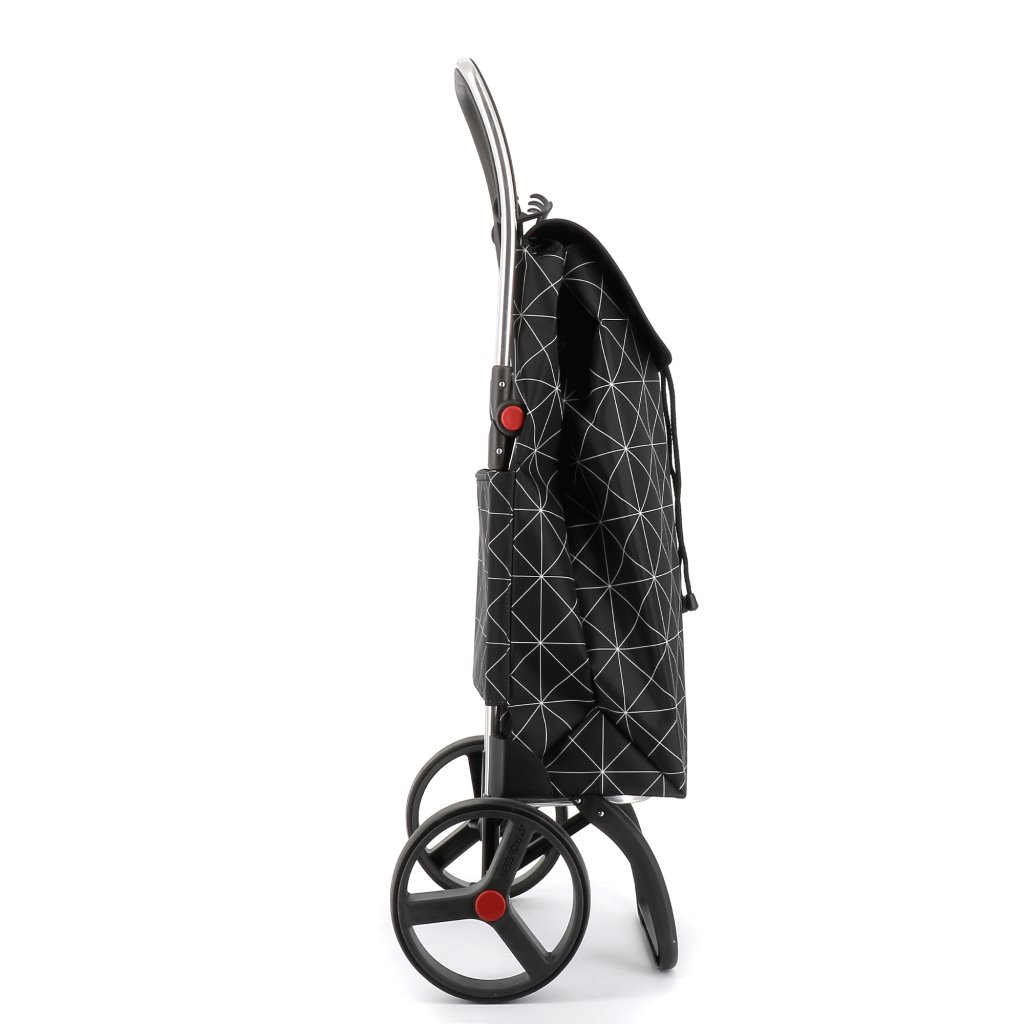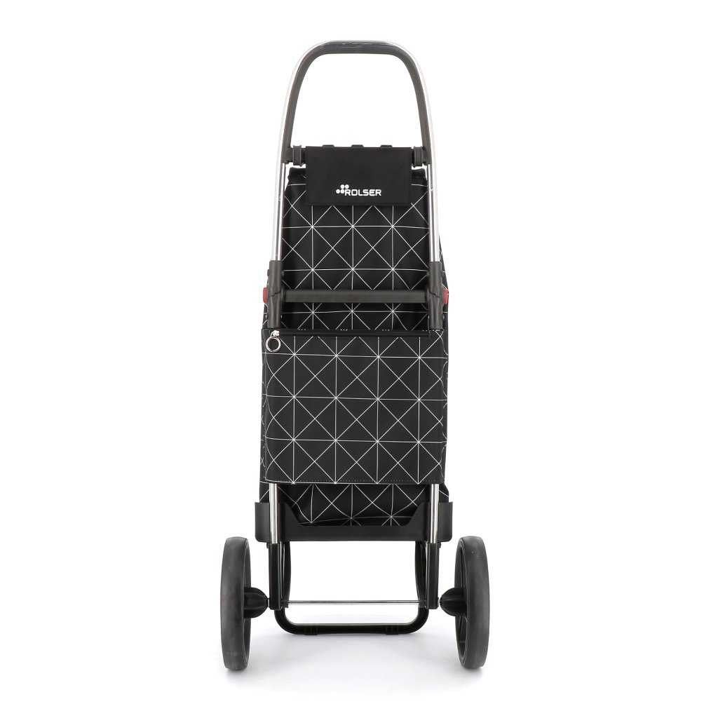Mezi nejpraktičtější podvozky Rolser patří bezesporu Logic RSG, který vyniká hned několika užitečnými vlastnostmi. Tou hlavní je určitě dvojitý skládací systém, díky němuž lze nejen složit přední oporu, která slouží k odstavení tašky do prostoru, ale také samotnou konstrukci. Pomocí bočních ovladačů (červené body) se totiž snadno složí na polovinu a lze ji pak jednoduše uložit nebo převážet v autě. Další praktickou vychytávkou je integrovaný úchyt, který slouží pro zavěšení tašky na nákupní vozík a není tak nutné tašku nikde odkládat. Úchyt je zároveň opatřem drobnými háčky, které při provozu slouží k zavěšení klasických tašek, sáčků apod. Ergonomické protiskluzové držadlo zajišťuje komfortní úchop a přispívá tak ke snadné manipulaci. Výška konstrukce 108 cm je vhodná i pro uživatele vyšší postavy.
