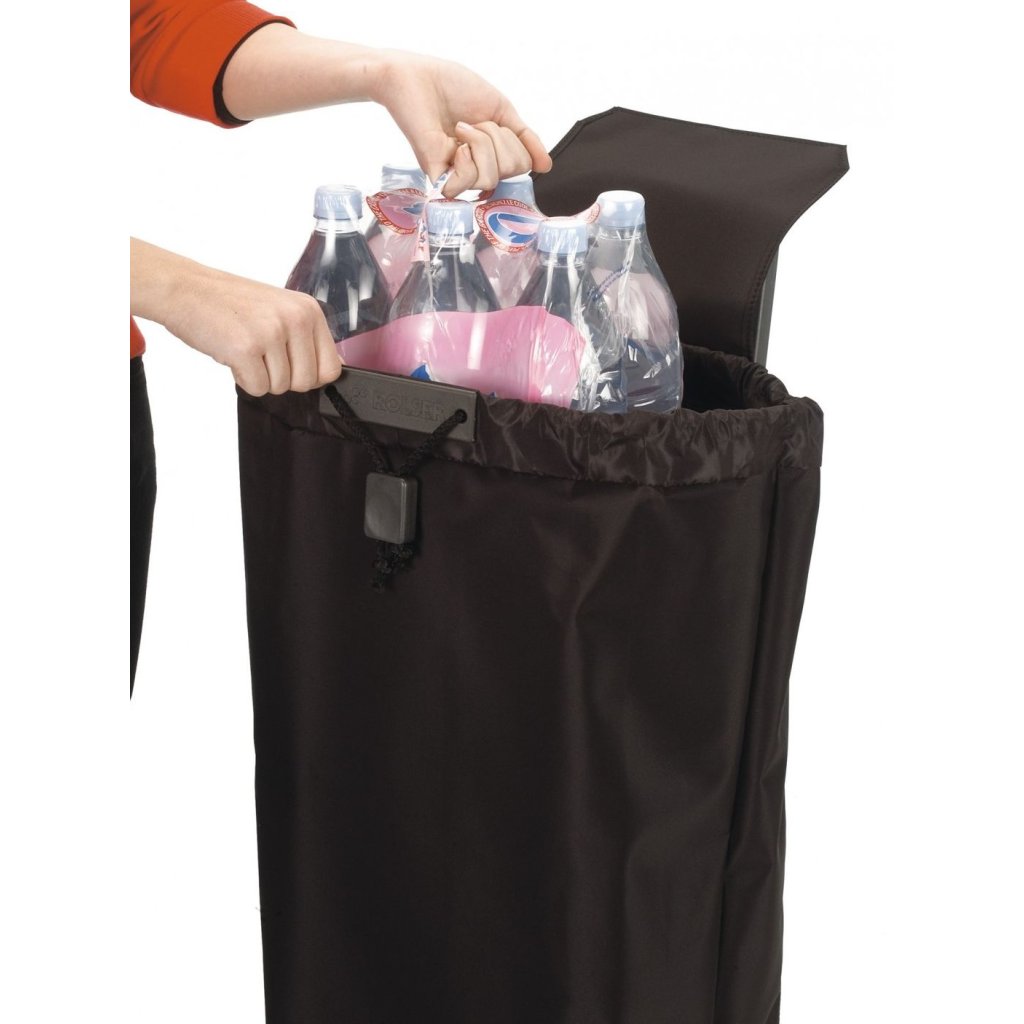 Mezi nejpraktičtější podvozky Rolser patří bezesporu Logic RSG, který vyniká hned několika užitečnými vlastnostmi. Tou hlavní je určitě dvojitý skládací systém, díky němuž lze nejen složit přední oporu, která slouží k odstavení tašky do prostoru, ale také samotnou konstrukci. Pomocí bočních ovladačů (červené body) se totiž snadno složí na polovinu a lze ji pak jednoduše uložit nebo převážet v autě. Další praktickou vychytávkou je integrovaný úchyt, který slouží pro zavěšení tašky na nákupní vozík a není tak nutné tašku nikde odkládat. Úchyt je zároveň opatřem drobnými háčky, které při provozu slouží k zavěšení klasických tašek, sáčků apod. Ergonomické protiskluzové držadlo zajišťuje komfortní úchop a přispívá tak ke snadné manipulaci. Výška konstrukce 108 cm je vhodná i pro uživatele vyšší postavy.