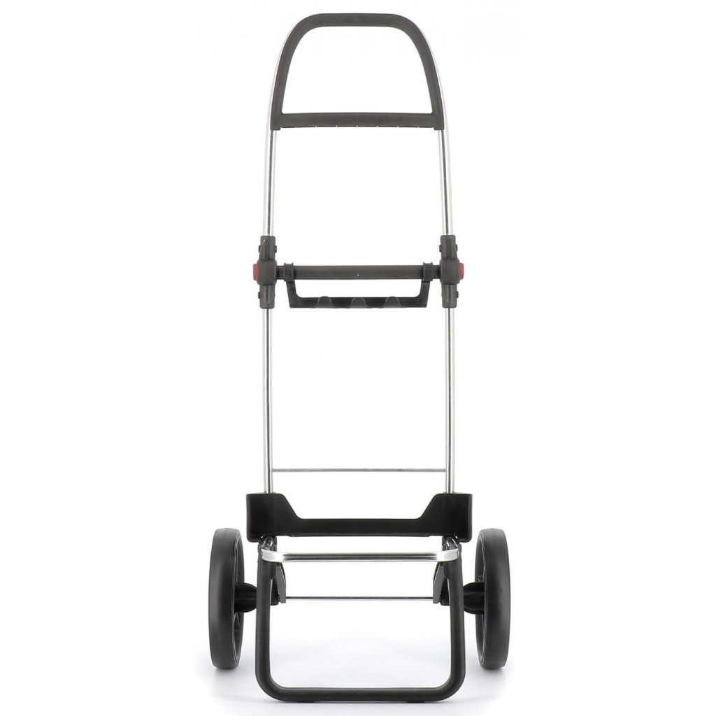 Mezi nejpraktičtější podvozky Rolser patří bezesporu Logic RSG, který vyniká hned několika užitečnými vlastnostmi. Tou hlavní je určitě dvojitý skládací systém, díky němuž lze složit nejen přední oporu, která slouží k odstavení tašky do prostoru, ale také samotnou konstrukci. Pomocí bočních ovladačů (červené body) se totiž snadno složí na polovinu a lze ji pak jednoduše uložit nebo převážet v autě. Další praktickou vychytávkou je integrovaný úchyt, který slouží pro zavěšení tašky na nákupní vozík a není tak nutné tašku nikde odkládat. Úchyt je zároveň opatřem drobnými háčky, které při provozu slouží k zavěšení klasických tašek, sáčků apod. Ergonomické protiskluzové držadlo zajišťuje komfortní úchop a přispívá tak ke snadné manipulaci. Výška konstrukce 108 cm je vhodná i pro uživatele vyšší postavy.