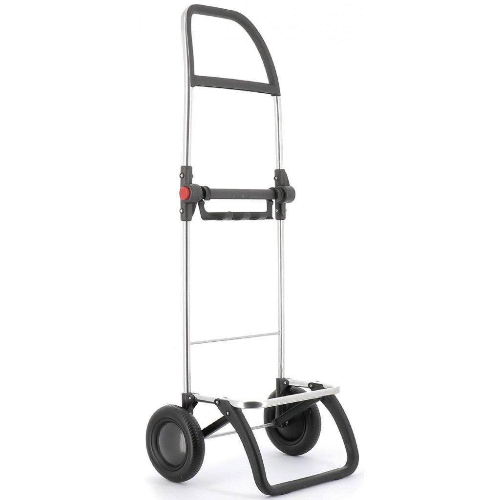 Lehká hliníková kostrukce Logic se dvěma koly klasické velikosti má hned několik praktických vlastností. Tou hlavní je bezesporu dvojitý skládací systém. Díky němu lze nejen složit přední oporu, která slouží k odstavení tašky do prostoru, ale také samotnou konstrukci. Pomocí bočních ovladačů (červené body) se totiž snadno složí na polovinu a lze ji pak jednoduše uložit nebo převážet v autě. Dalším praktickým doplňkem je integrovaný úchyt, který slouží pro zavěšení tašky na nákupní vozík a není tak nutné tašku nikde odkládat. Úchyt je zároveň opatřem drobnými háčky, které při provozu slouží k zavěšení klasických tašek či sáčků. Ergonomické protiskluzové držadlo zajišťuje komfortní úchop a přispívá tak ke snadné manipulaci. Výška konstrukce 105,5 cm je vhodná i pro uživatele vyšší postavy.