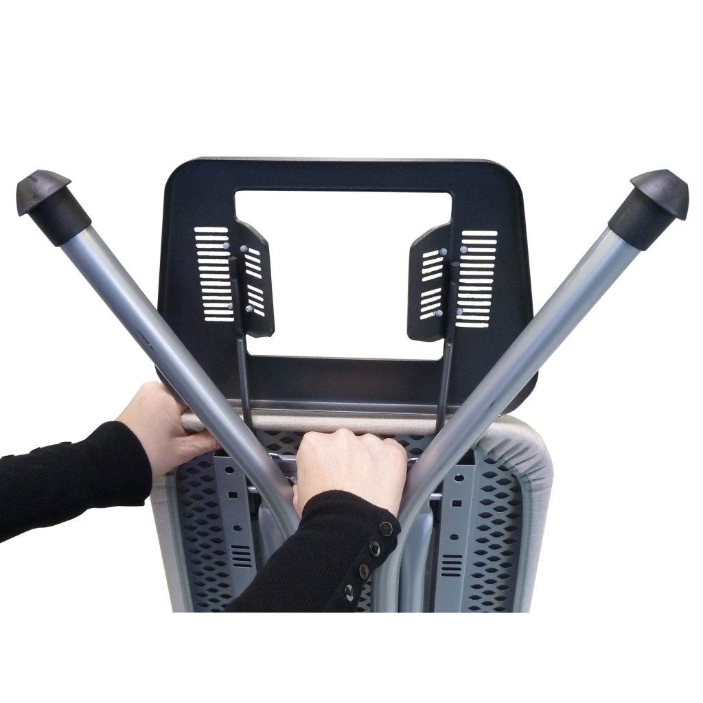 Žehlící prkno Rolser K-TRES lze plynule nastavit do 11 různých pozic, takže si jednoduše nastavíte tu, která zrovna vyhovuje vašim tělesným proporcím. Maximální výšku 99 cm ocení zejména uživatelé vyšší postavy. Je-li pro vás však příjemnější žehlení v sedě, přijde vám vhod i minimální výška 58 cm.