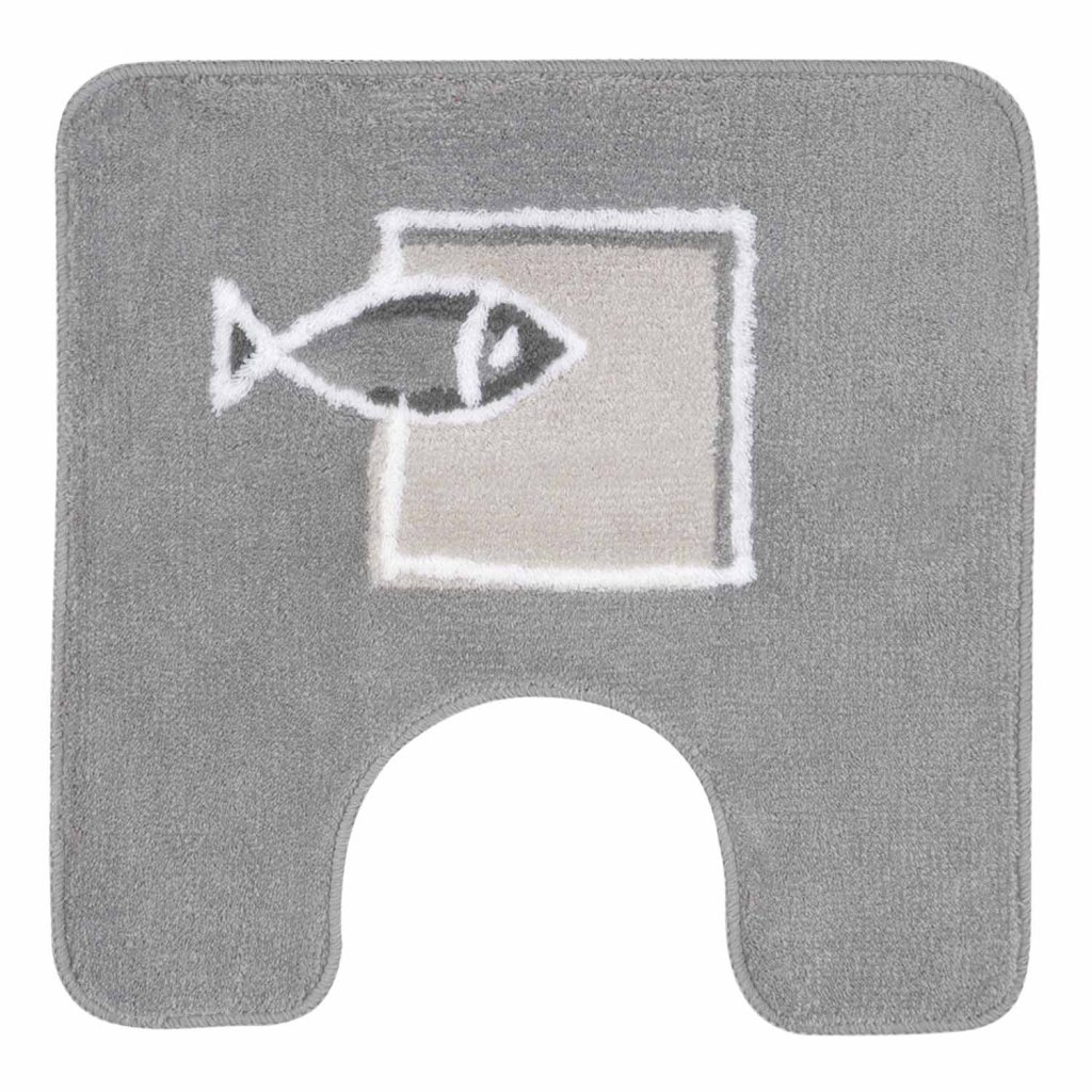 Spirella koupelnová WC předložka ANDROS, šedá, polyester, motiv rybičky, 50 x 50 cm