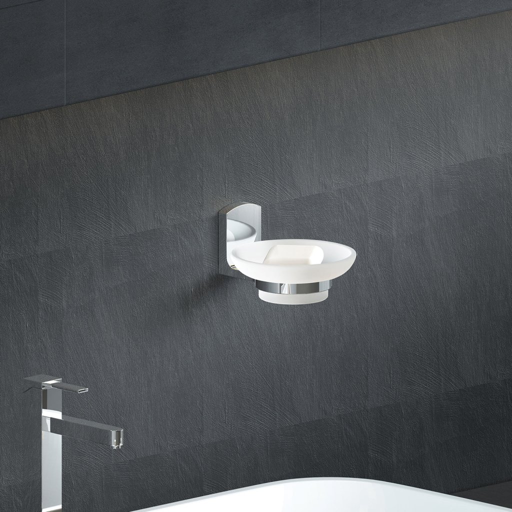 Spirella nástěnný držák s mýdlenkou TAKU, matná bílá, sklo, lesklá chromovaná ocel