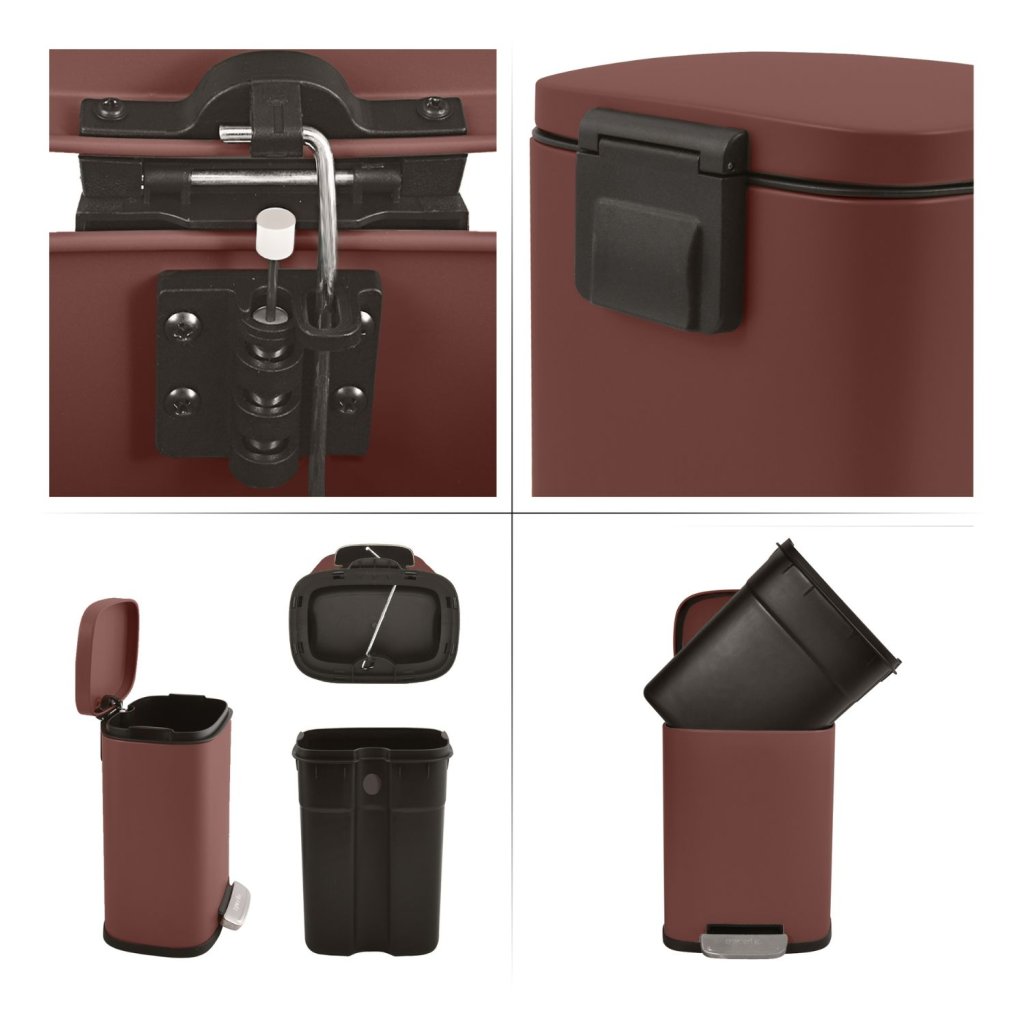 Spirella pedálový odpadkový koš AKIRA, matná burgundy, 5 L
