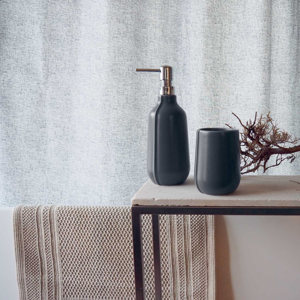 Sprchový závěs značky Elements od Spirella. KOLEKCE PREMIUM: Ručně vyráběné v Evropě. Prvotřídní kvalita techniky tisku. Díky komplexní povrchové úpravě je závěs vodoodpudivý a zároveň nedráždí pokožku. Vodotěsnost, odolnost proti plísním a zesílené švy zajišťují dlouhou životnost. Neuvěřitelně příjemný na dotek, jemný a elegantní zároveň, estetický vzhled, který oživí vaší koupelnu. Kroužky na závěsy nejsou součástí balení. Rozměry: 240 x 200 cm Barva: šedá Materiál: Polyester| Značka | ELEMENTS BY SPIRELLA |