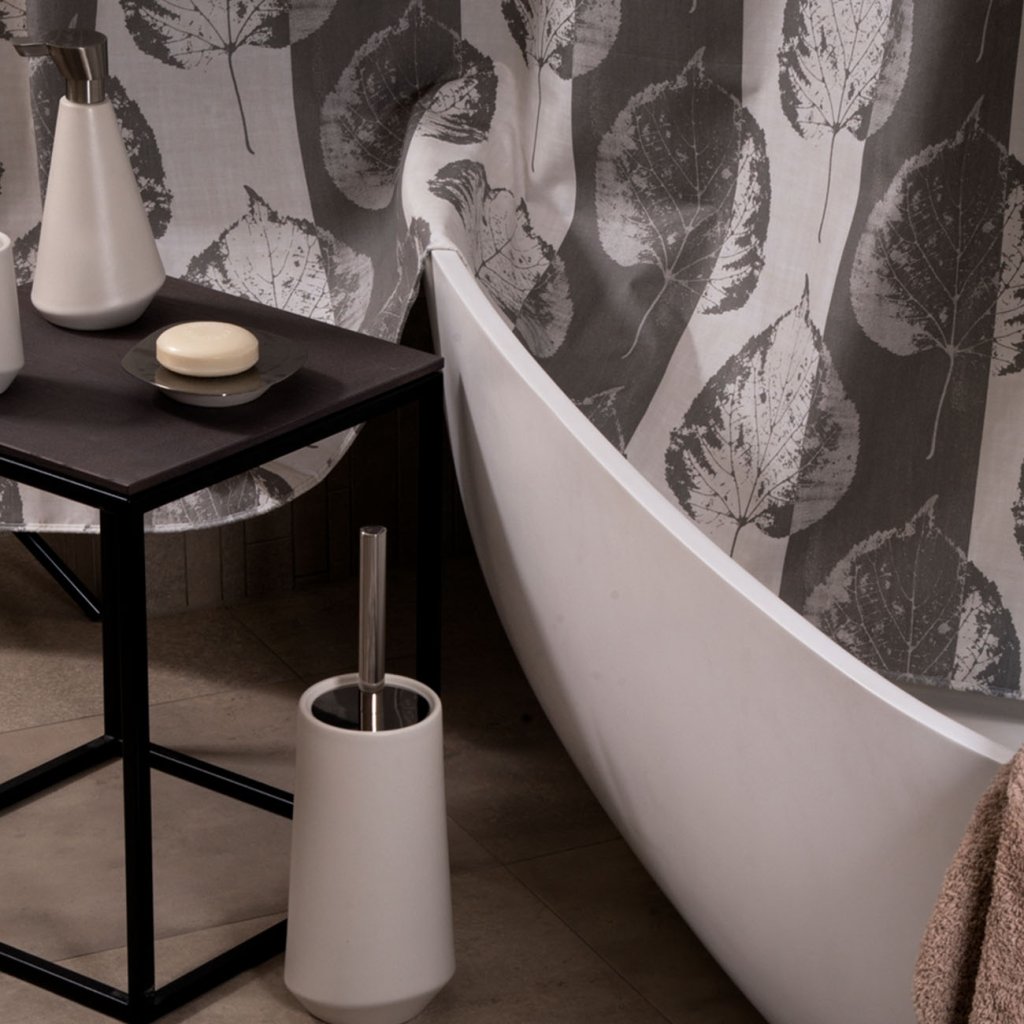 Sprchový závěs značky Elements od Spirella. KOLEKCE PREMIUM: Ručně vyráběné v Evropě. Prvotřídní kvalita techniky tisku. Díky komplexní povrchové úpravě je závěs vodoodpudivý a zároveň nedráždí pokožku. Vodotěsnost, odolnost proti plísním a zesílené švy zajišťují dlouhou životnost. Neuvěřitelně příjemný na dotek, jemný a elegantní zároveň, estetický vzhled, který oživí vaší koupelnu. Kroužky na závěsy nejsou součástí balení. Rozměry: 240 x 180 cm Barva: šedohnědá Materiál: Polyester| Značka | ELEMENTS BY SPIRELLA |