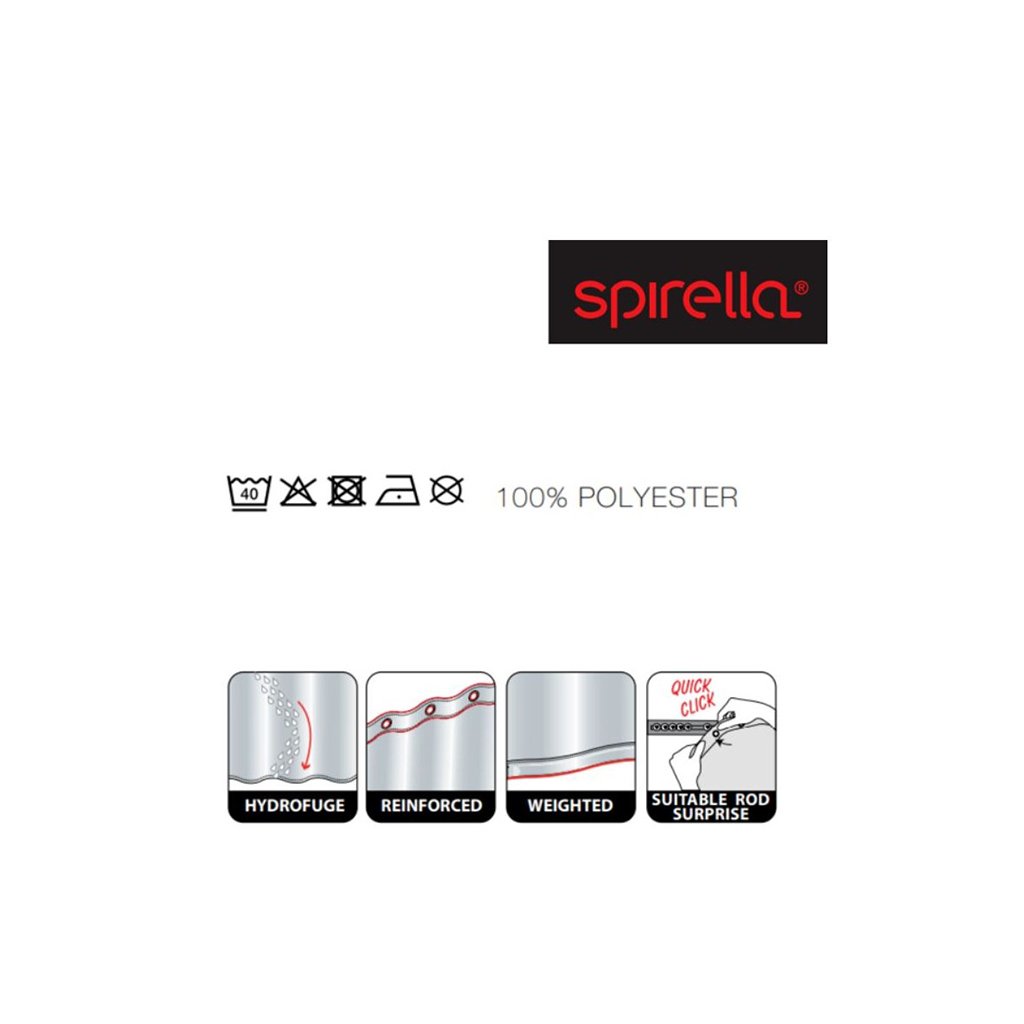 Se Spirellou propojíte styl a funkčnost a dopřejete si jedinečný zážitek ze sprchování. 100% vodotěsný Zesílený okraj a pevné kroužky Se zatíženým lemem Kompatibilní s tyčí SURPRISE Spirella