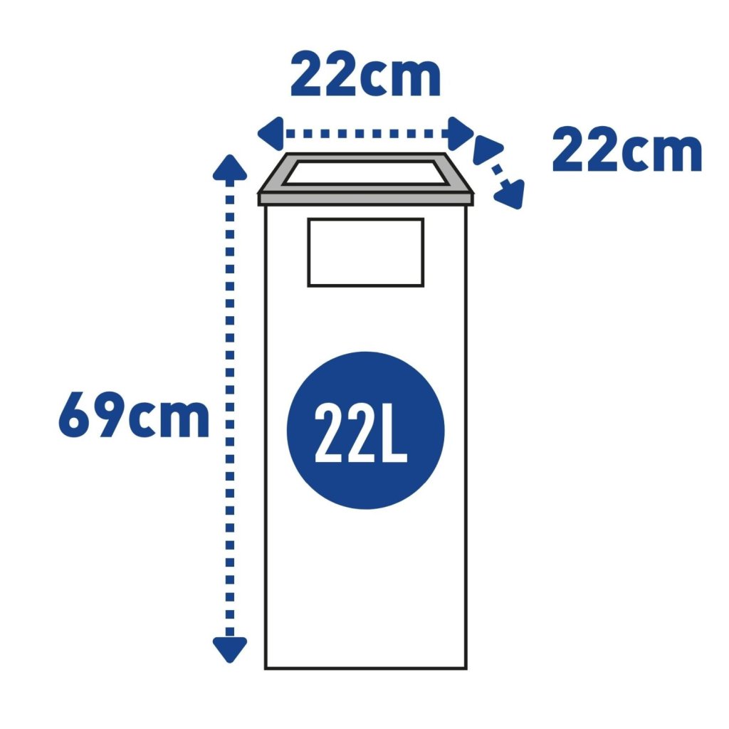 Moderní a vysoce odolný venkovní odpadkový koš s popelníkem 22 L vyrobený z kvalitní nerezové oceli je nezbytností pro každé místo, kde se odhazují nedopalky cigaret. Ideální pro hotely, terasy, balkony, parkoviště a veřejné budovy. Koš s šířkou 22 cm a výškou 69 cm je odolný vůči teplotním a atmosférickým vlivům.
